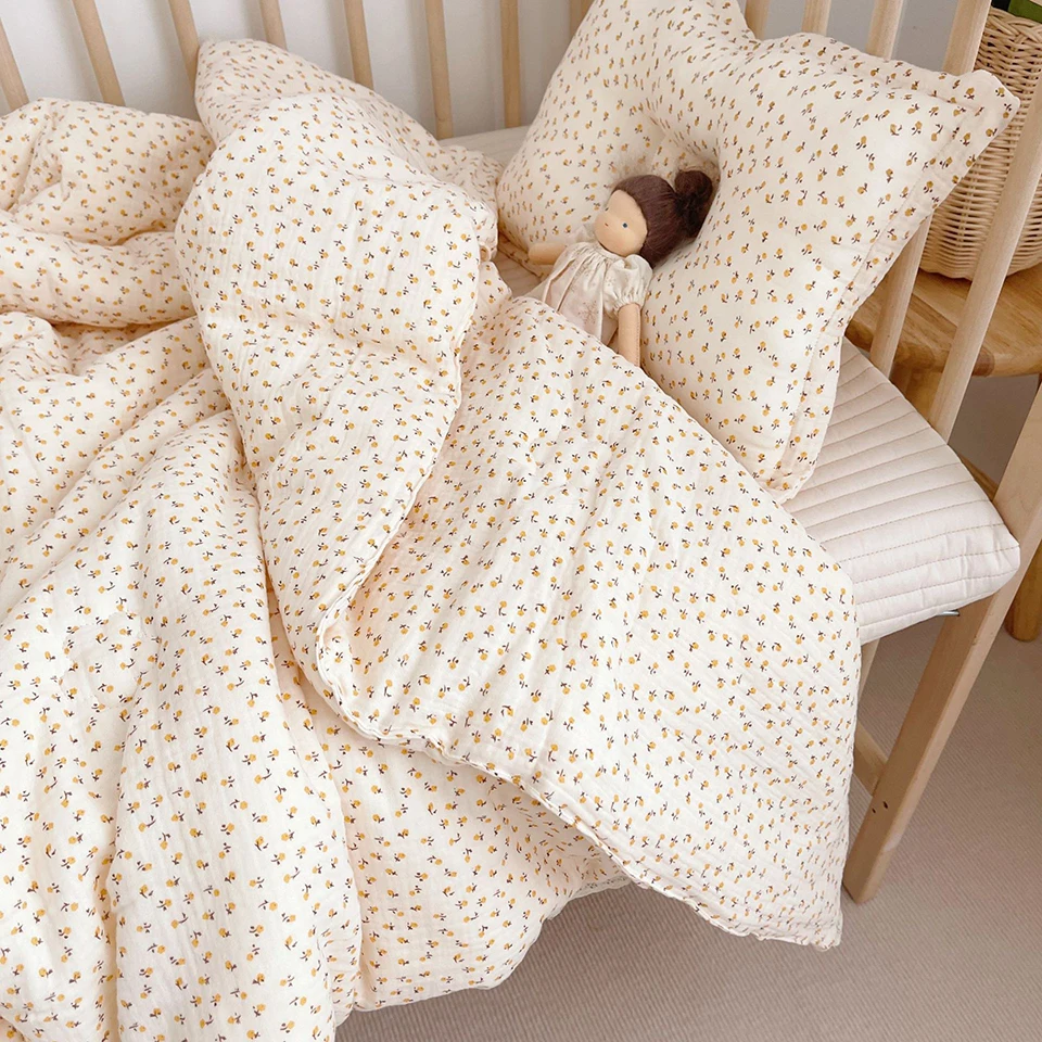 Comprar Manta de bebé de gasa térmica suave, edredón para cuna de bebé con margaritas, borde de encaje, ropa de cama infantil transpirable, manta grande y cálida para el crecimiento del bebé
