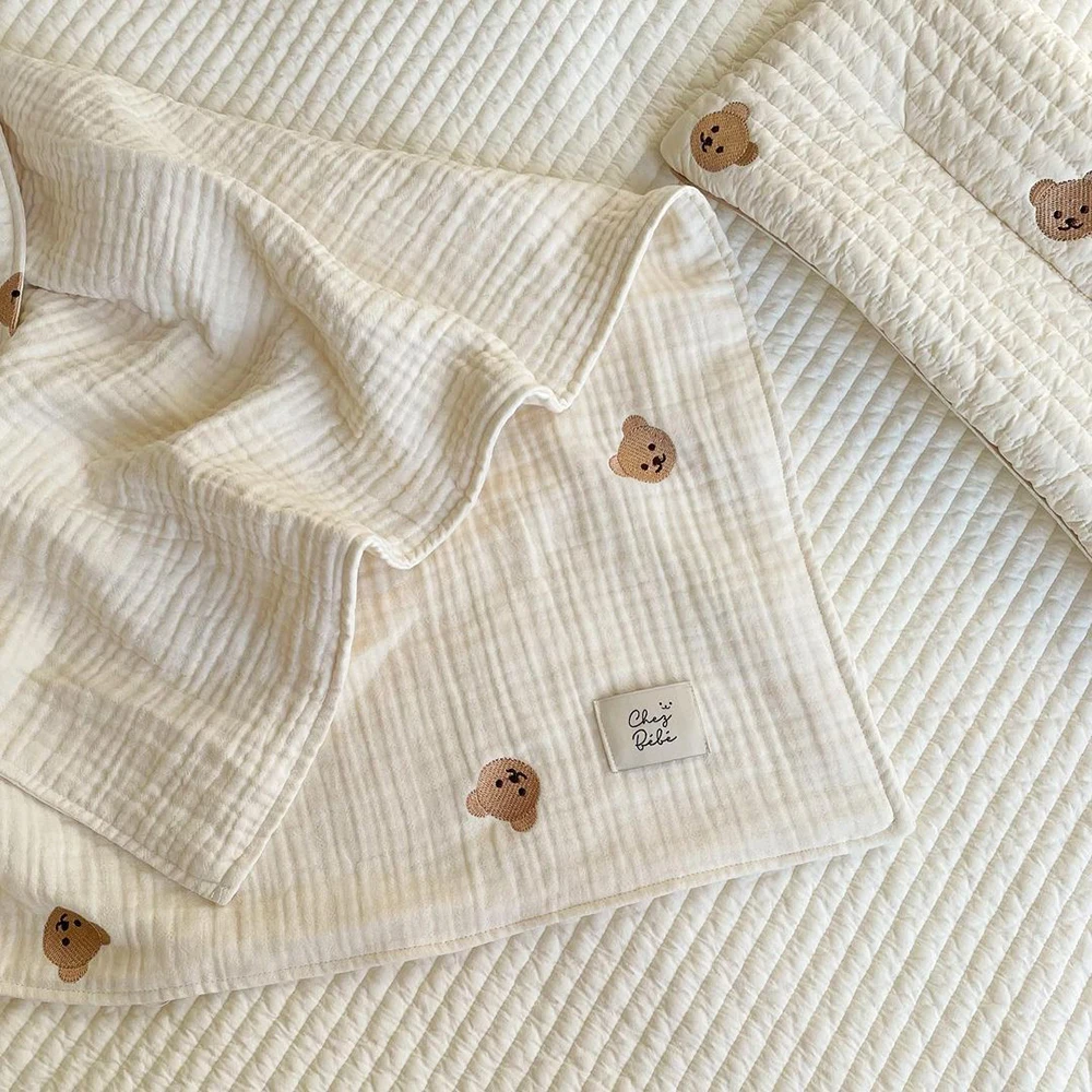 Comprar Manta con bordado de oso coreano para bebé recién nacido, accesorios de ropa de cama de algodón, 135x85cm
