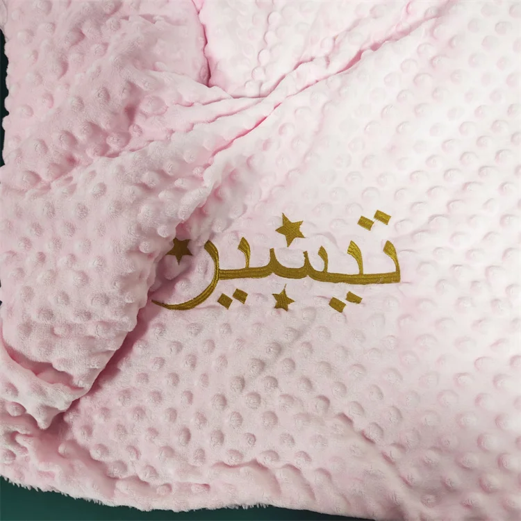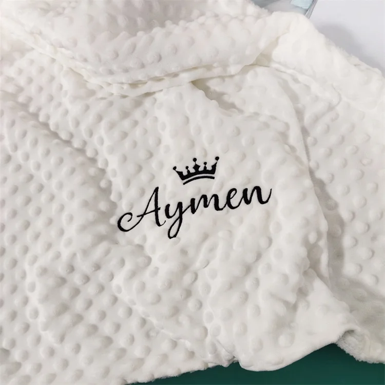 Descripción: Nombre del bebé personalizado bordado en la manta.