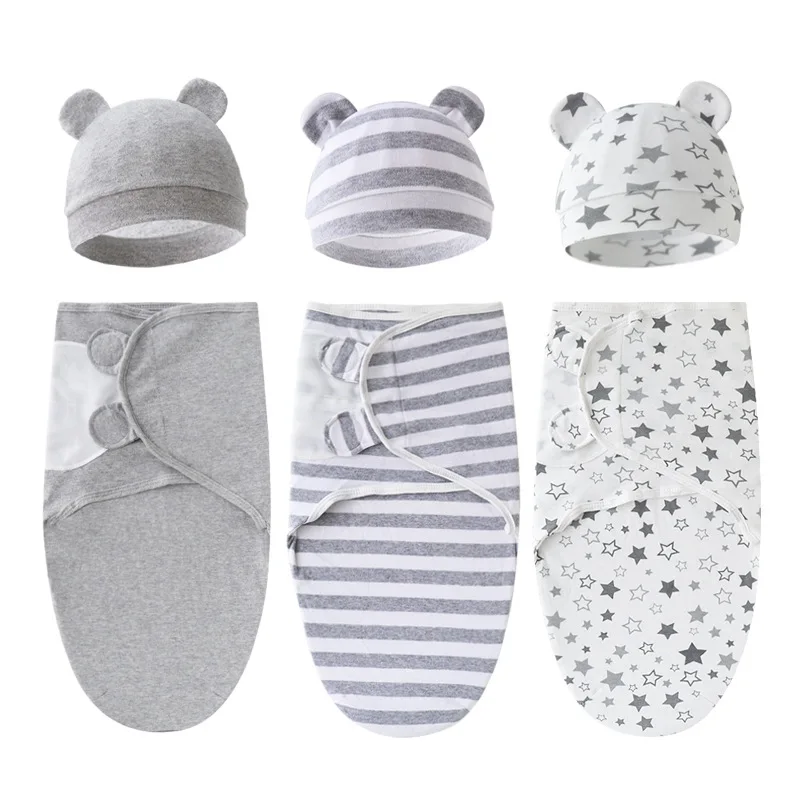 Manta envolvente de algodón para bebé de 0 a 6 meses, manta de fotografía antideslumbrantes para recién nacido, conjunto de gorro envolvente, colcha antipatadas, regalo para recién nacido