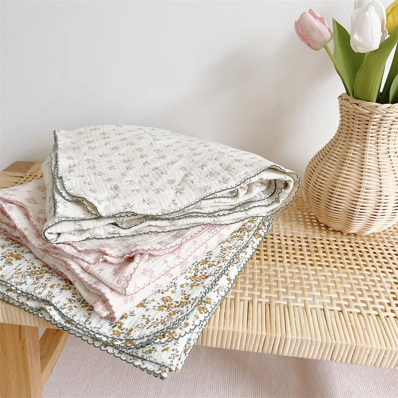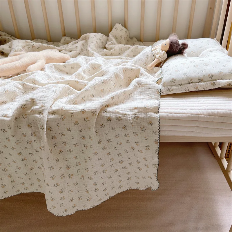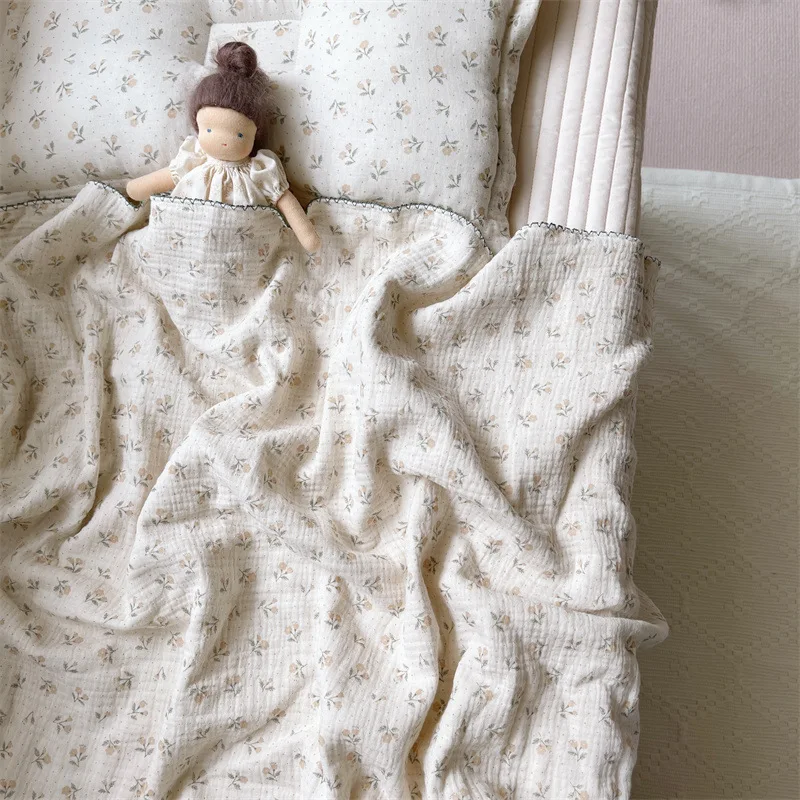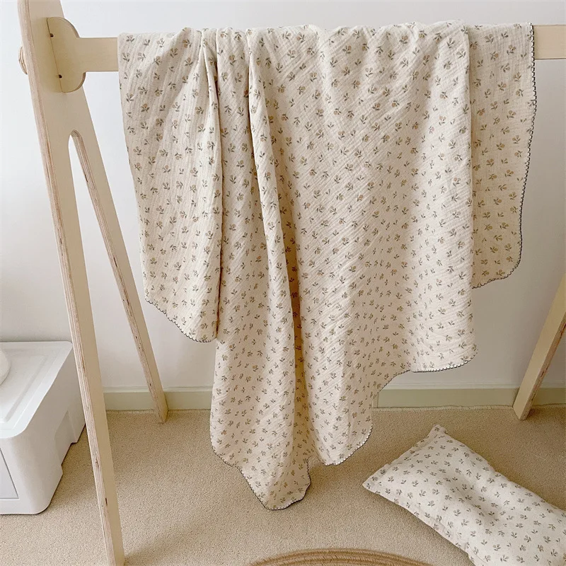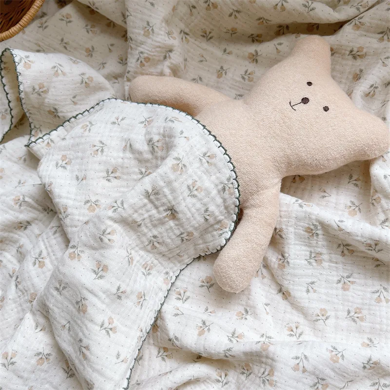 Manta de muselina de algodón con estampado Floral para bebé, manta de gasa de algodón de 4 capas, funda de cama para recién nacidos y niños, mantas receptoras