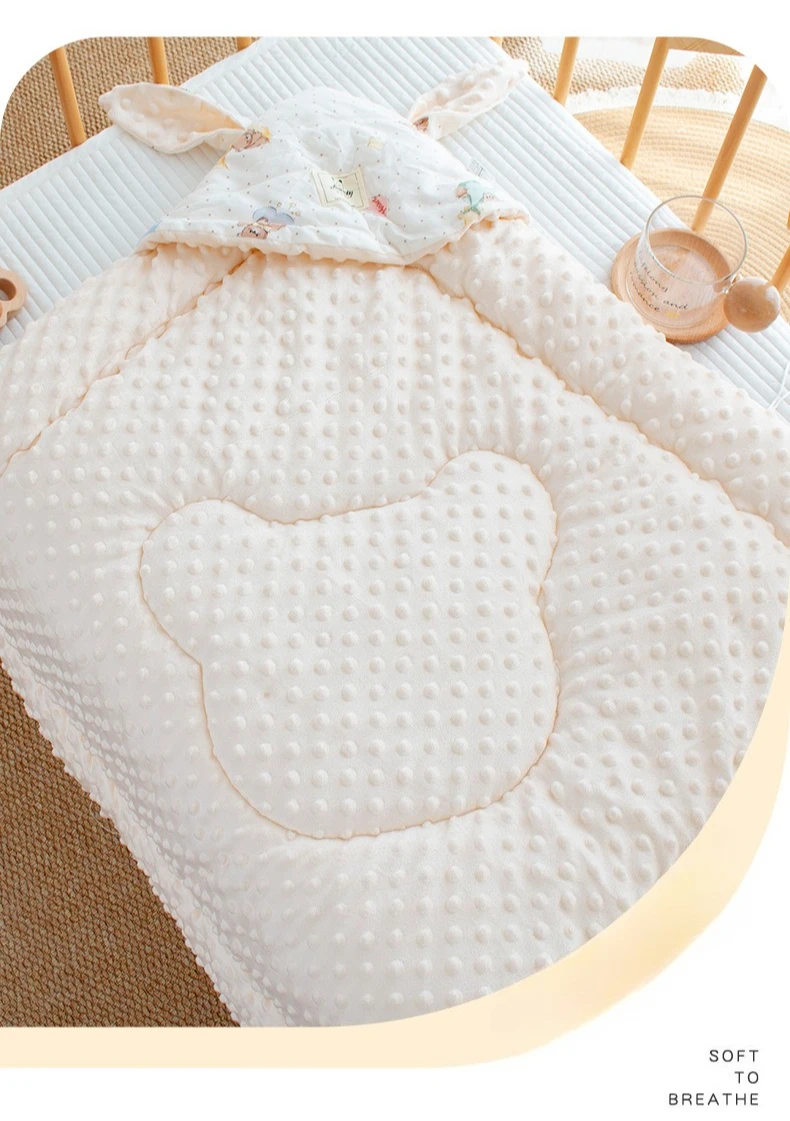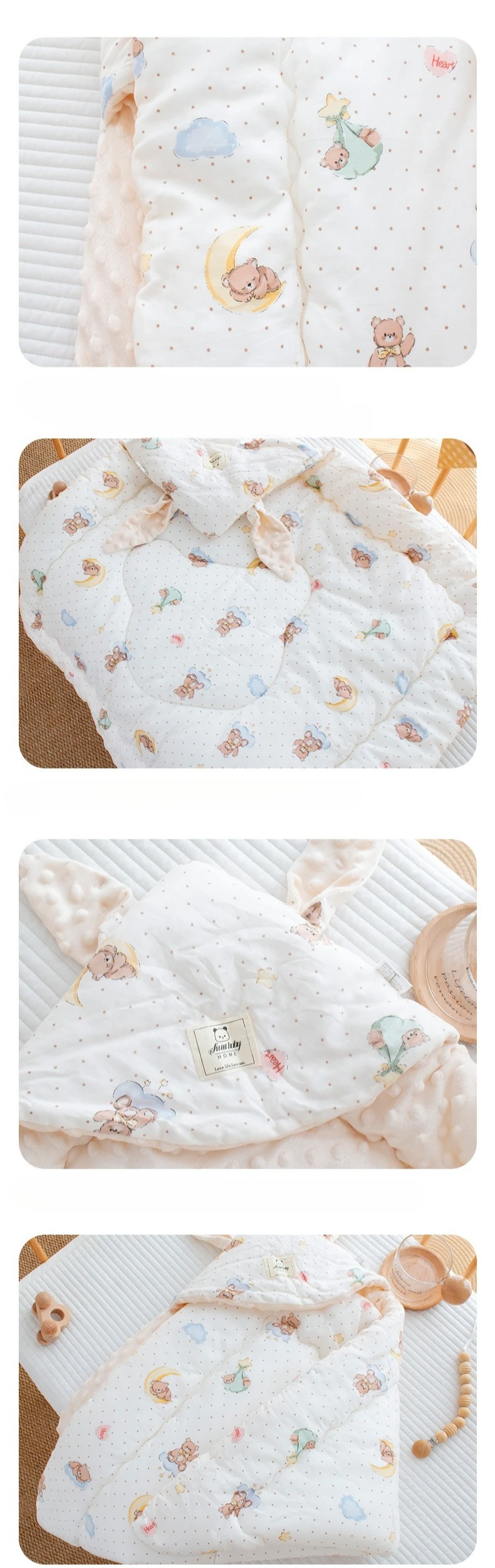 Manta envolvente de algodón suave y cálida con puntos sensoriales, manta receptora para recién nacido, tela para envolver con estampado de orejas para regalo de Baby Shower