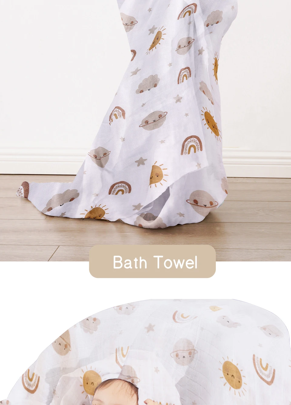 Uso: manta para bebé recién nacido, toalla de baño, envoltura para saco de dormir, funda para cochecito de bebé, tapete de juego, etc.