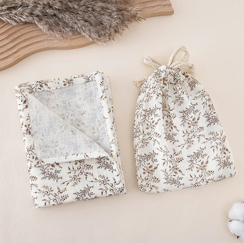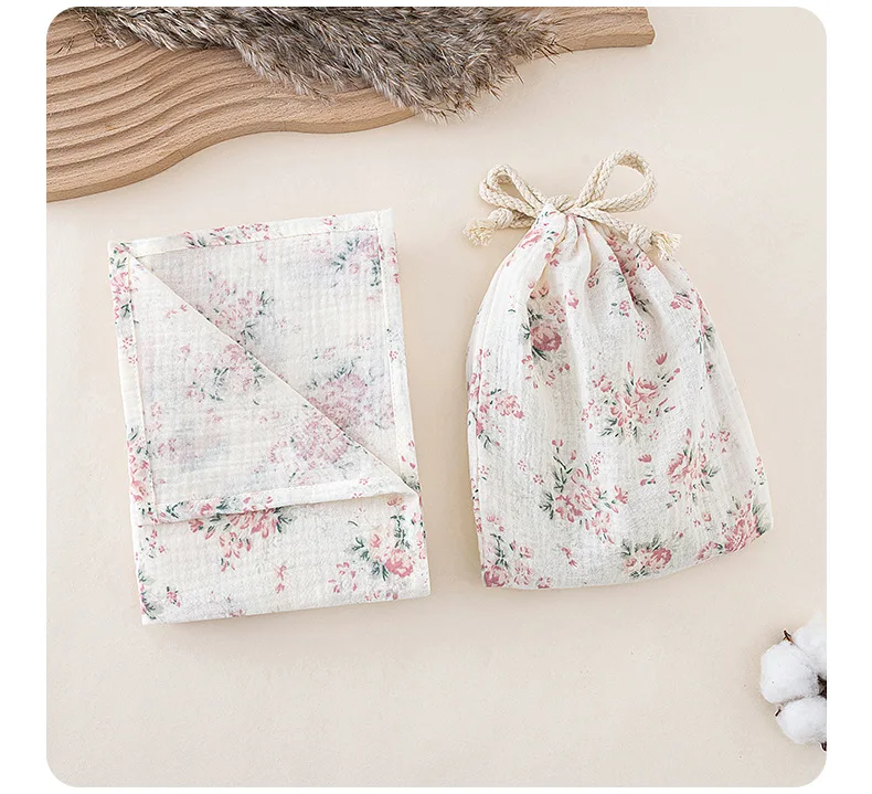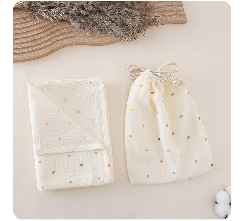 Manta envolvente de muselina de algodón para bebé, 2 uds., bolsas de almacenamiento con cordón, toalla de baño para bebé, toalla cómoda, bolsa colgante, artículo de cama