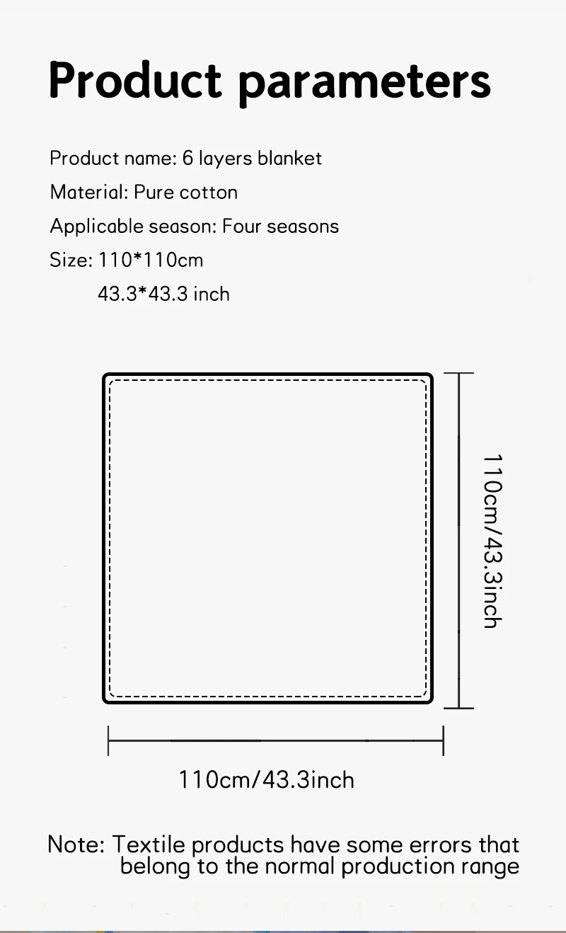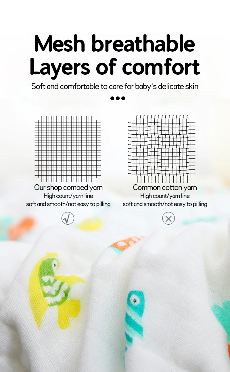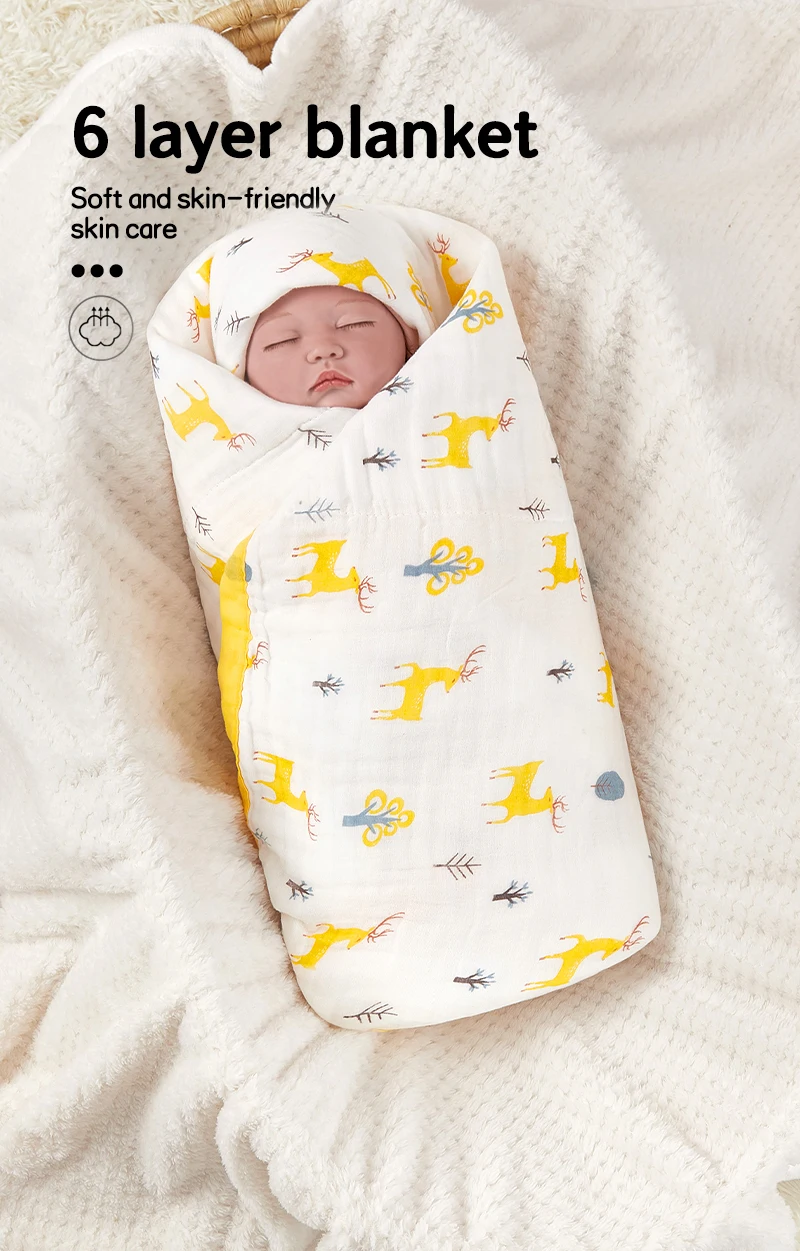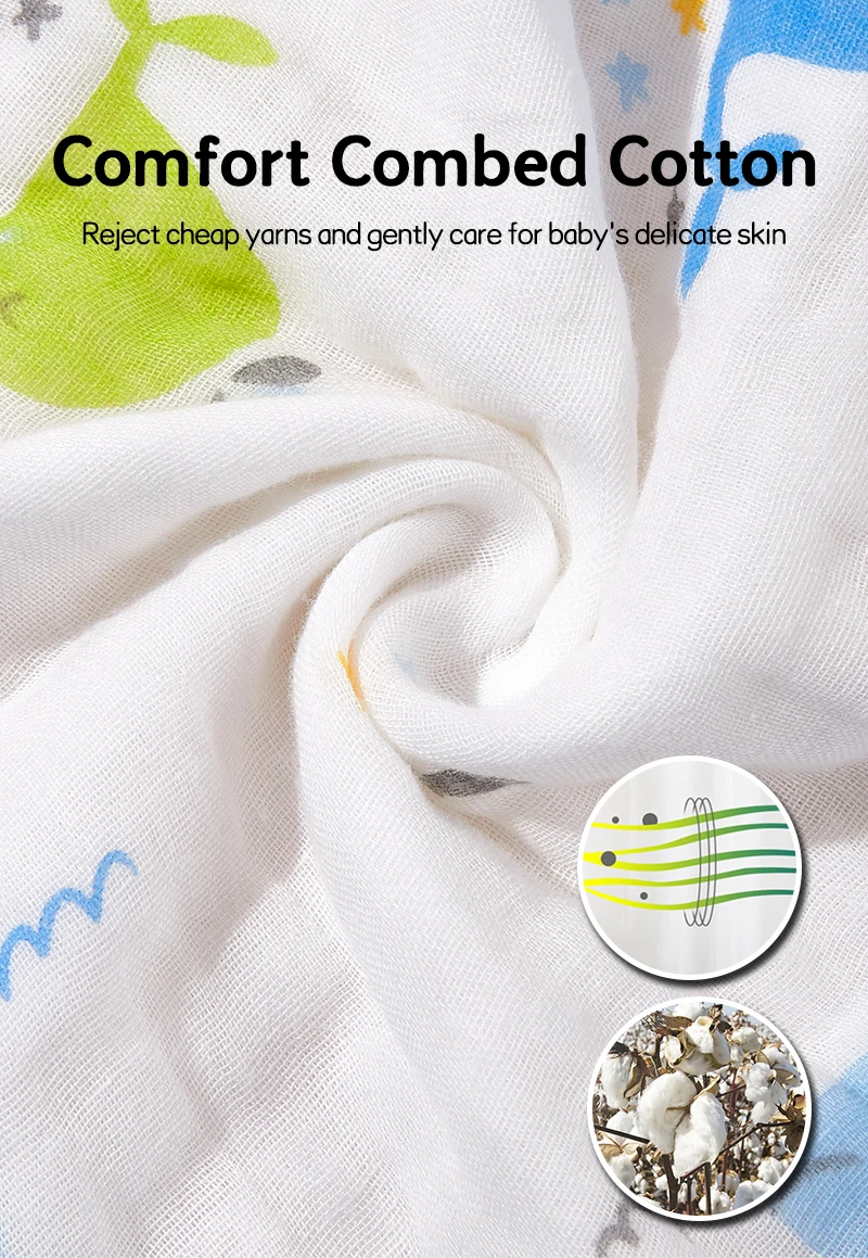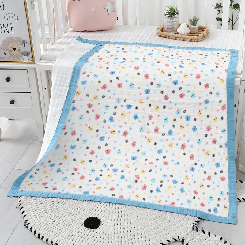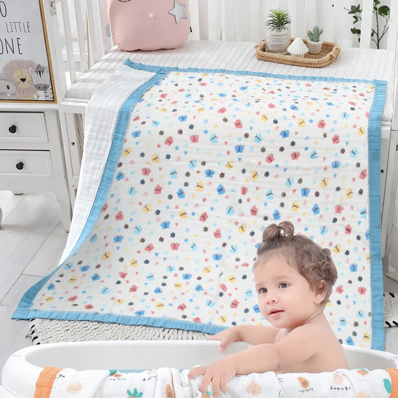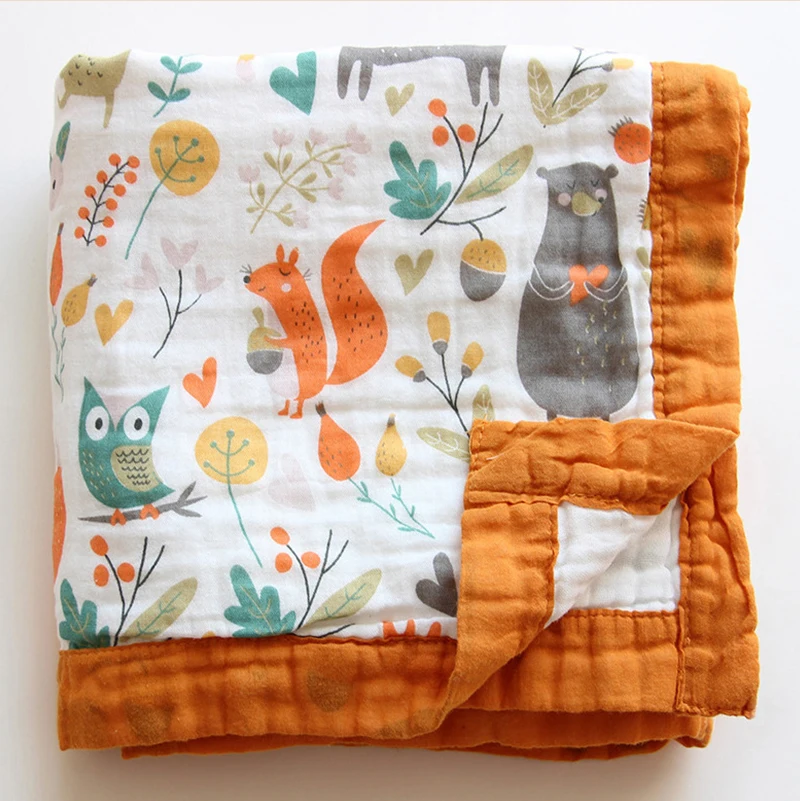 Comprar Manta gruesa de algodón puro para bebé recién nacido, envoltura de toalla de baño, manta suave impresa, 110x100cm, 6 capas