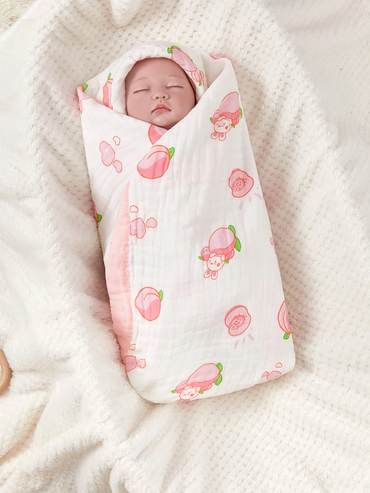 Comprar Manta gruesa de algodón puro para bebé recién nacido, envoltura de toalla de baño, manta suave impresa, 110x100cm, 6 capas