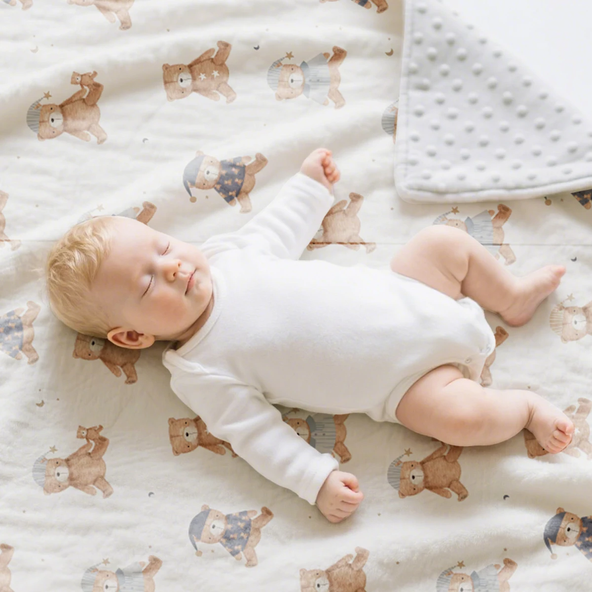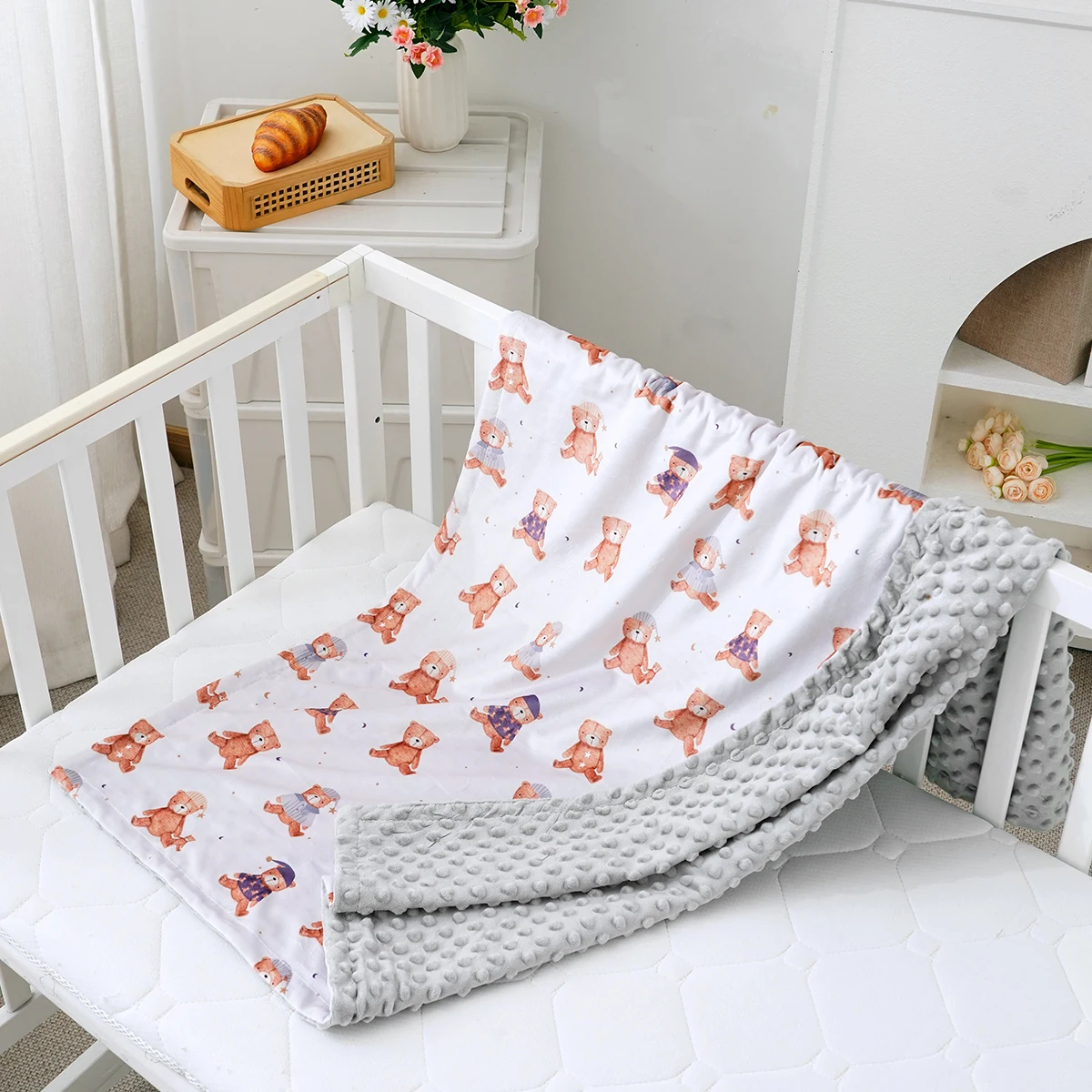 Comprar Manta gruesa de pelusa de frijol para bebé, manta envolvente súper suave de doble capa para niños, edredón, cómoda y acogedora para dormir, 100x70cm