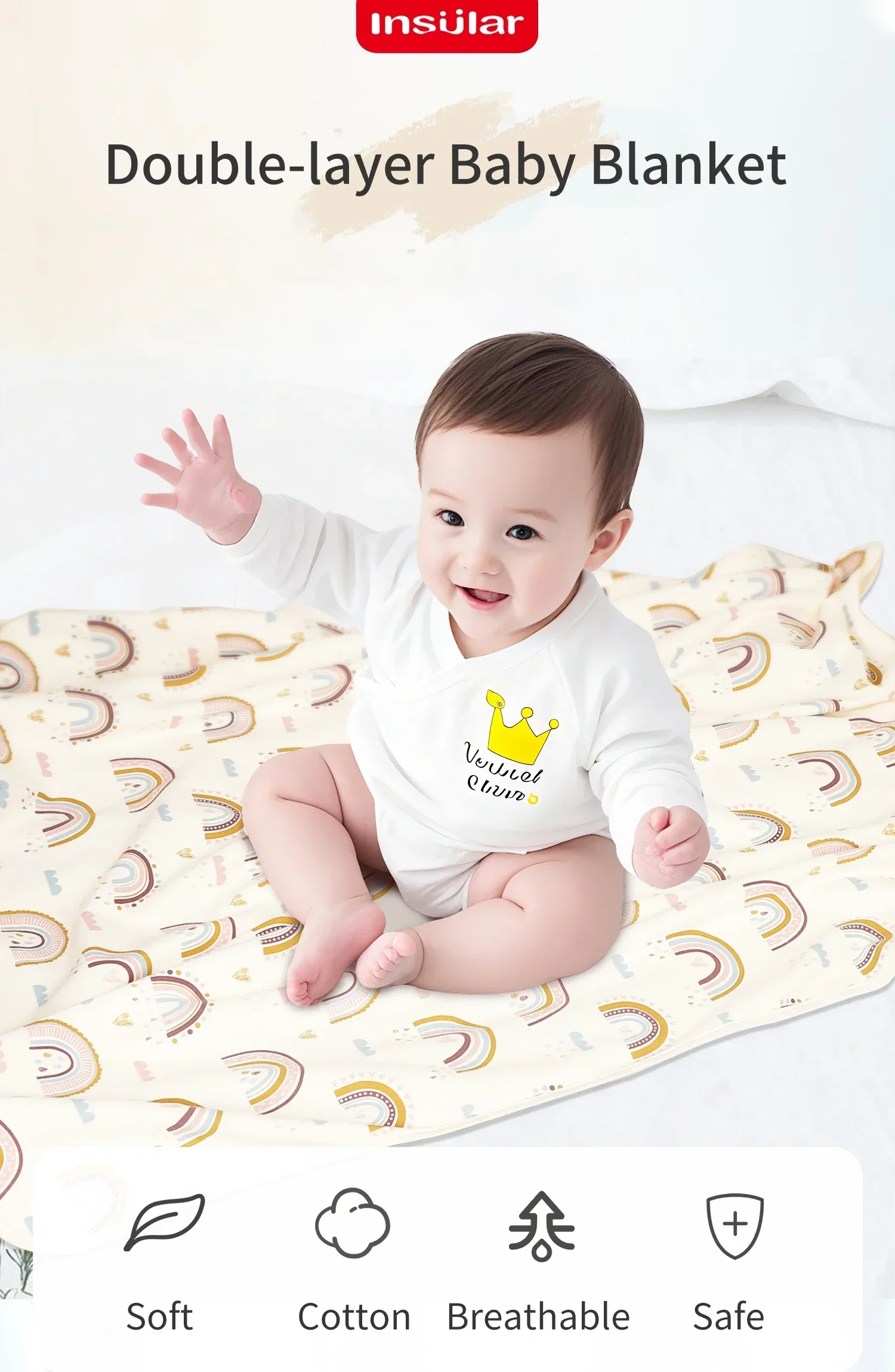 Manta INSULAR de 2 capas suave para niños, 100% de algodón, manta para siesta para niños, colcha envolvente transpirable para bebés, manta agradable para la piel para bebés de 1 a 3 años