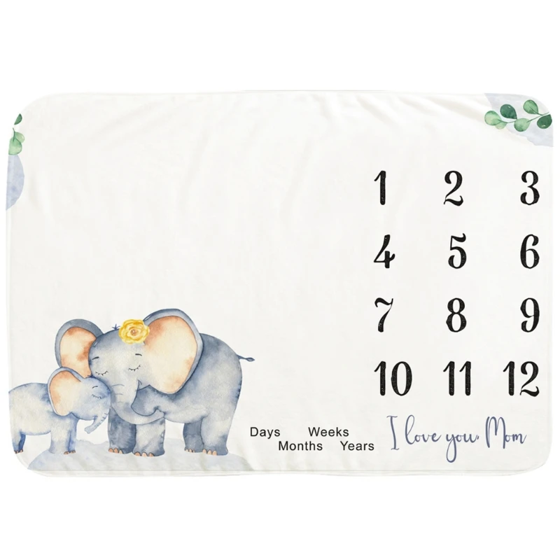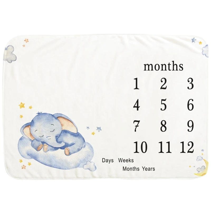 Comprar Manta mensual de franela suave para bebé, paño de fondo con patrón de elefante bonito, accesorios creativos para fotografía de recién nacido