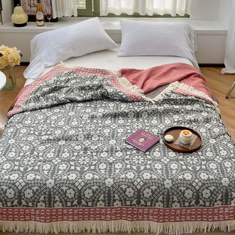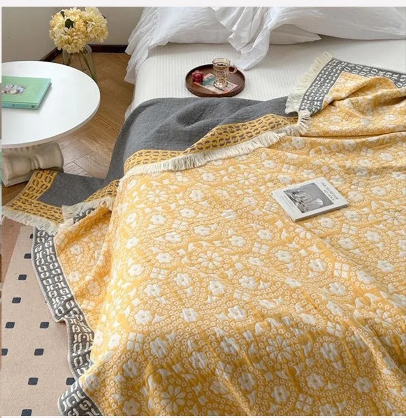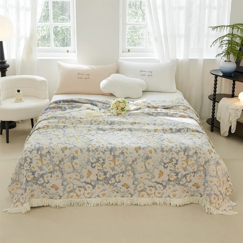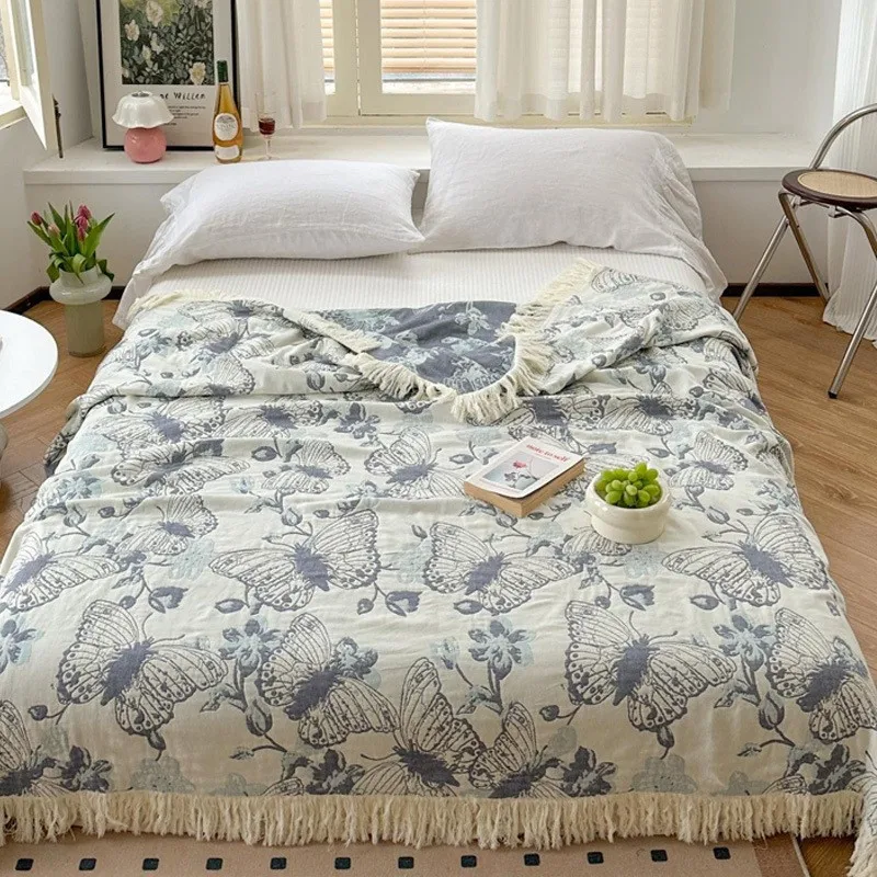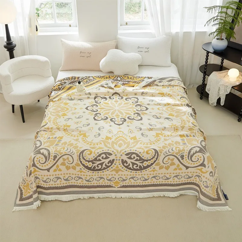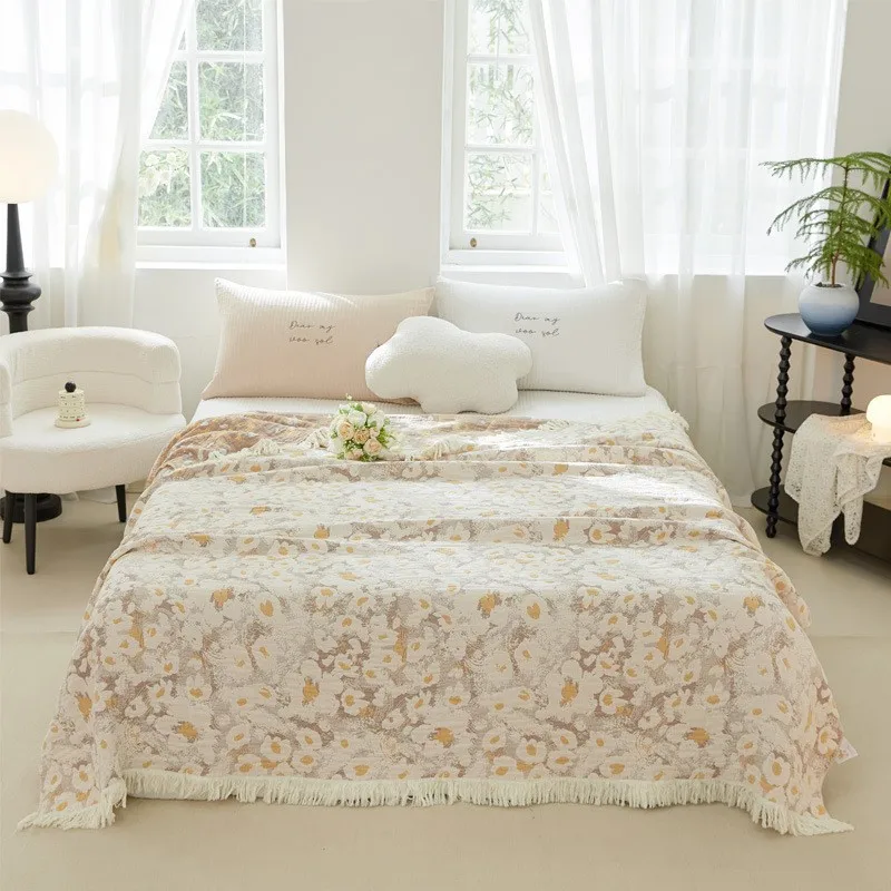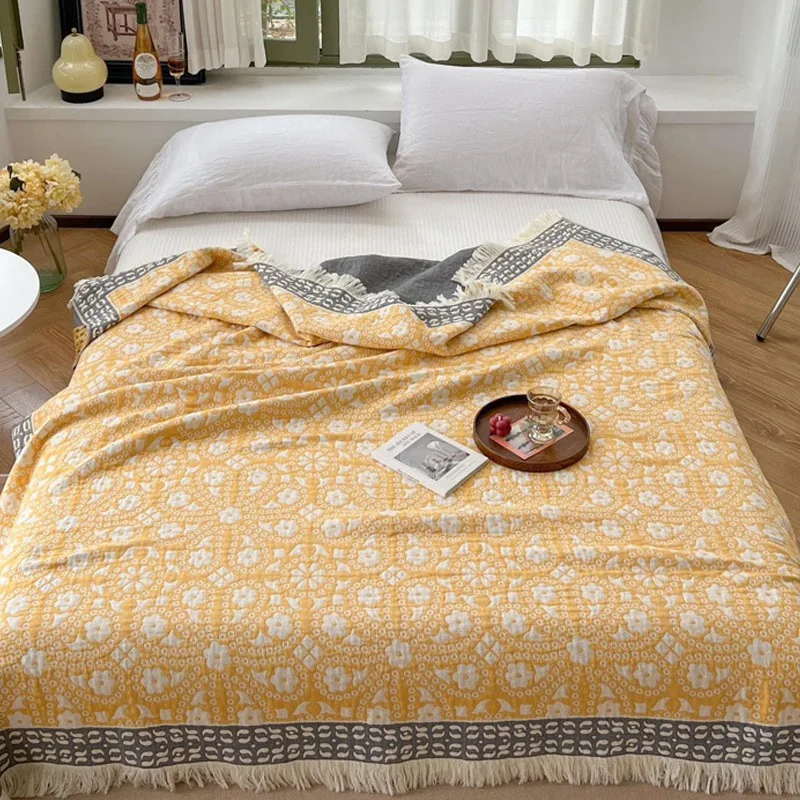 Manta multifuncional individual y doble de algodón de gasa pura de cuatro capas para el hogar, colcha de toalla para sofá de aire acondicionado para oficina