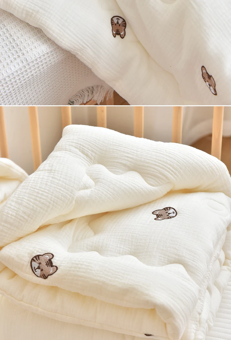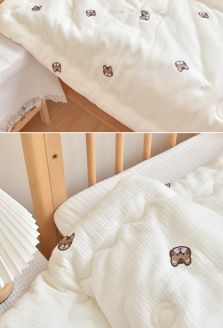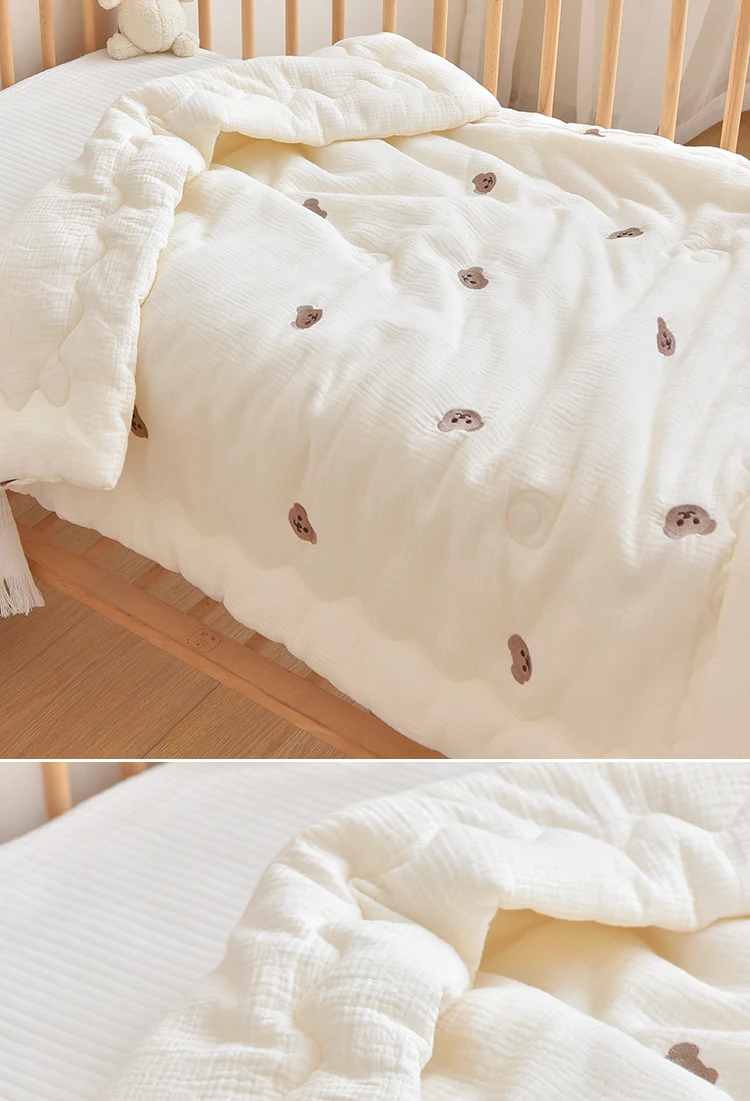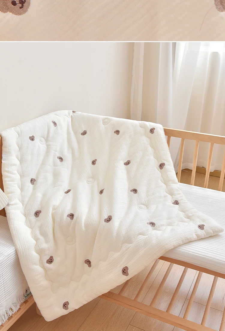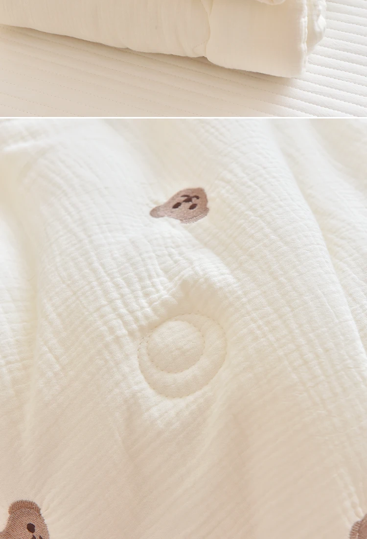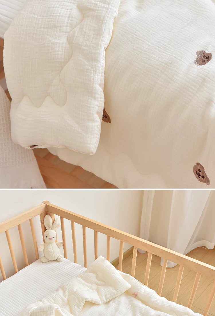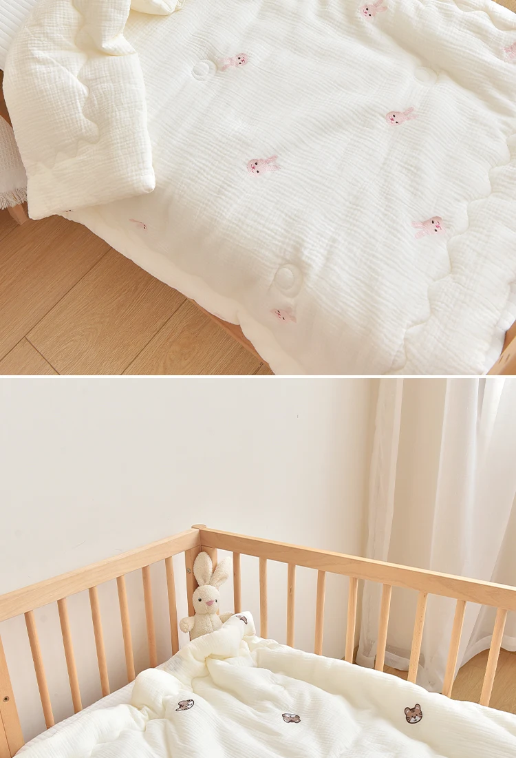 Manta de muselina de algodón para niños, edredón con bordado de conejito y oso, edredón para cuna de bebé, funda para siesta infantil para guardería, edredón coreano