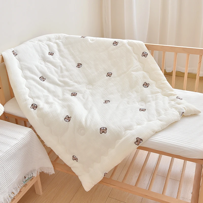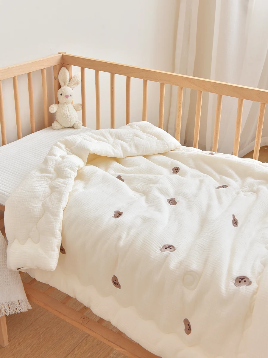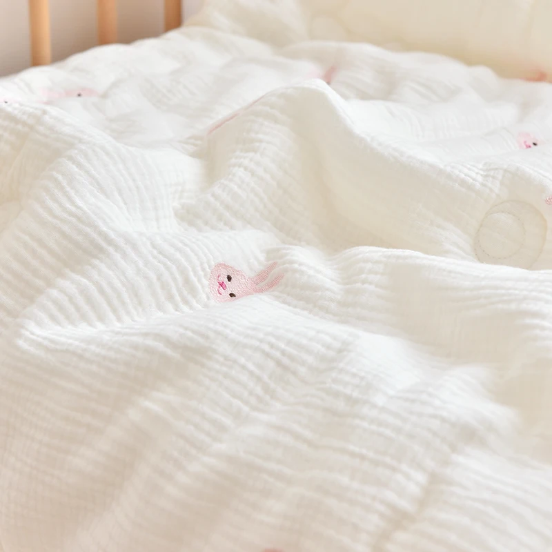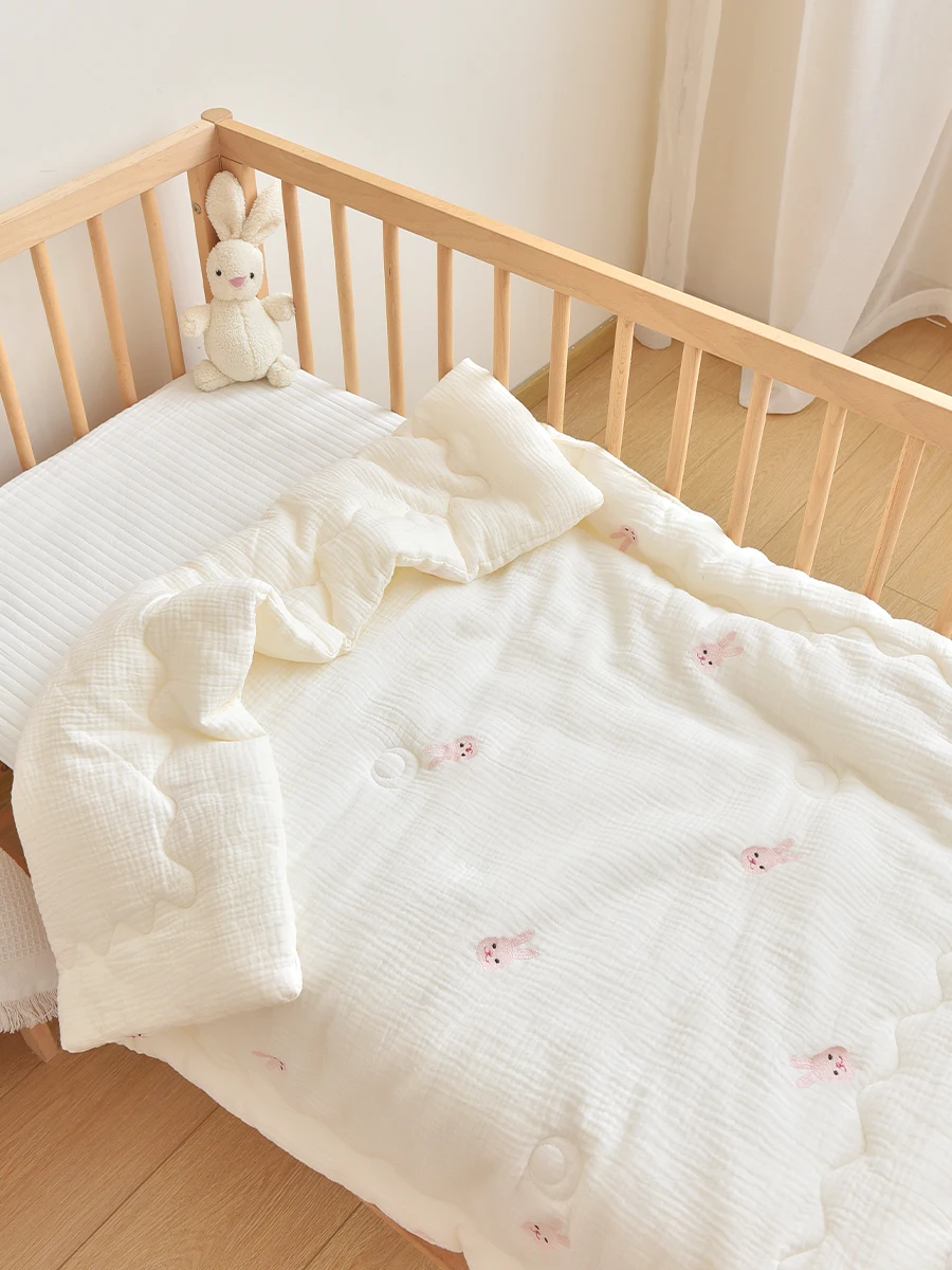 Manta de muselina de algodón para niños, edredón con bordado de conejito y oso, edredón para cuna de bebé, funda para siesta infantil para guardería, edredón coreano