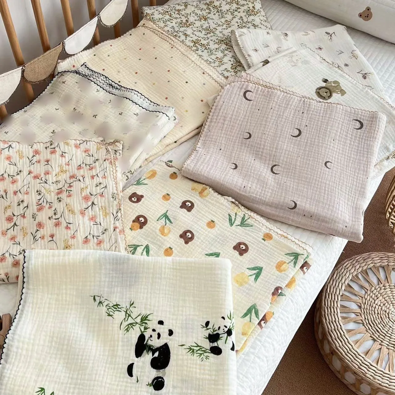 Manta de muselina para bebé, edredón fino de gasa con estampado Floral de doble capa, manta de algodón para cochecito, ropa de cama para niños, 110x130cm