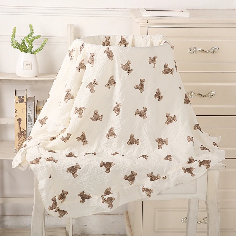 Manta de muselina para bebé, ropa de cama a cuadros, artículos de bebé recién nacido, manta de cochecito de oso de dibujos animados, funda de cama infantil