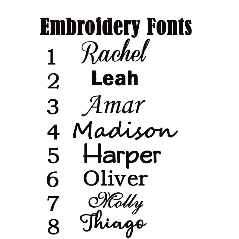 También envíe el número de letra del bordado y el color del Bordado que necesita por mensaje, si no hay indicación, usará el enlace color del bordado y la fuente.