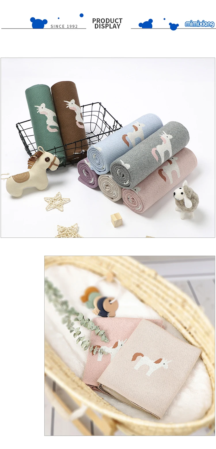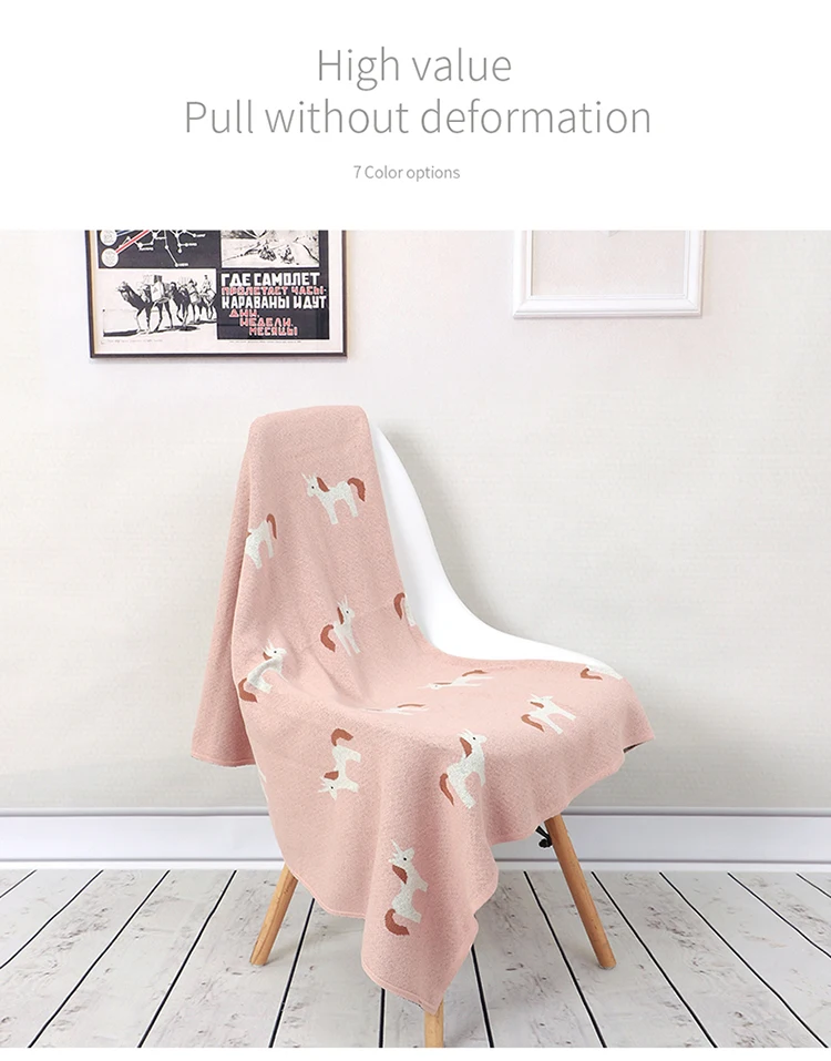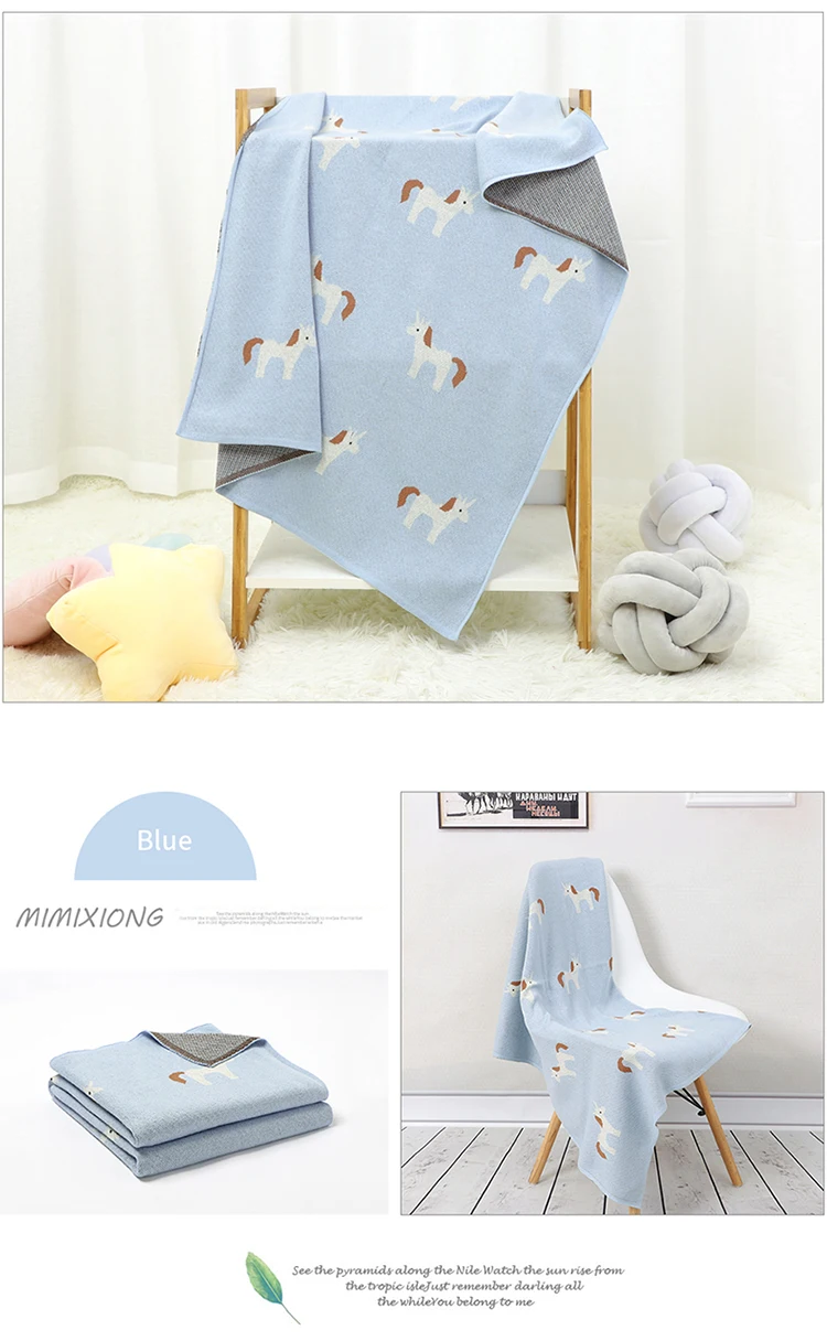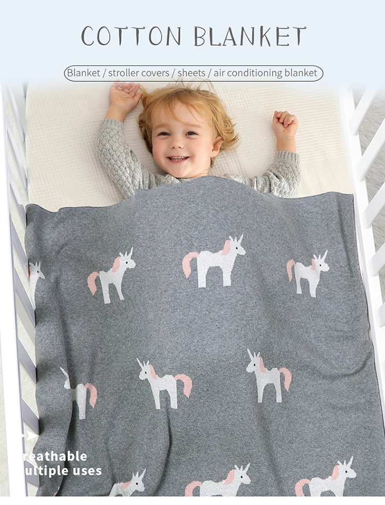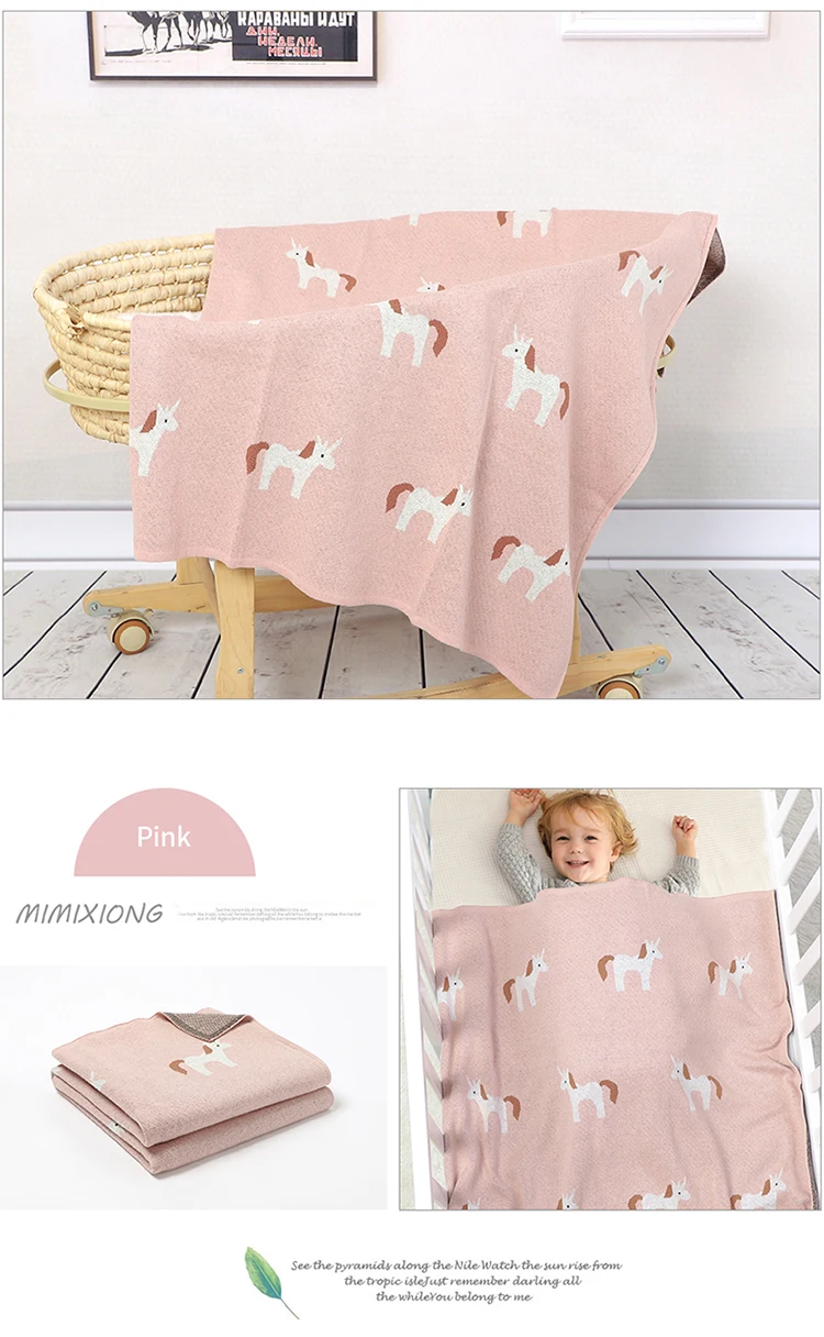 Manta de punto para bebé recién nacido, edredón de tela escocesa para cuna de niña pequeña, 100% algodón, bonito unicornio, envoltura suave para cochecito de niño