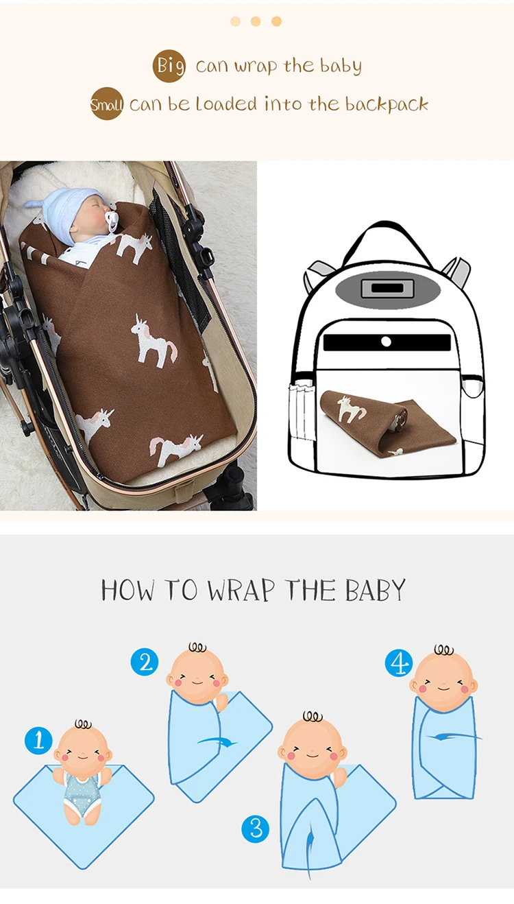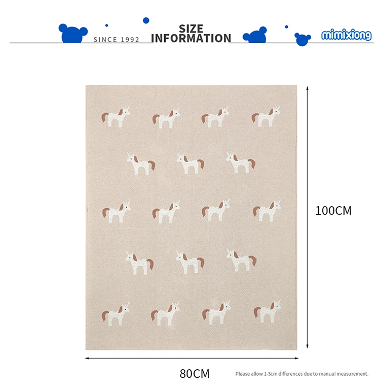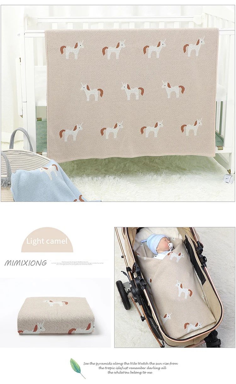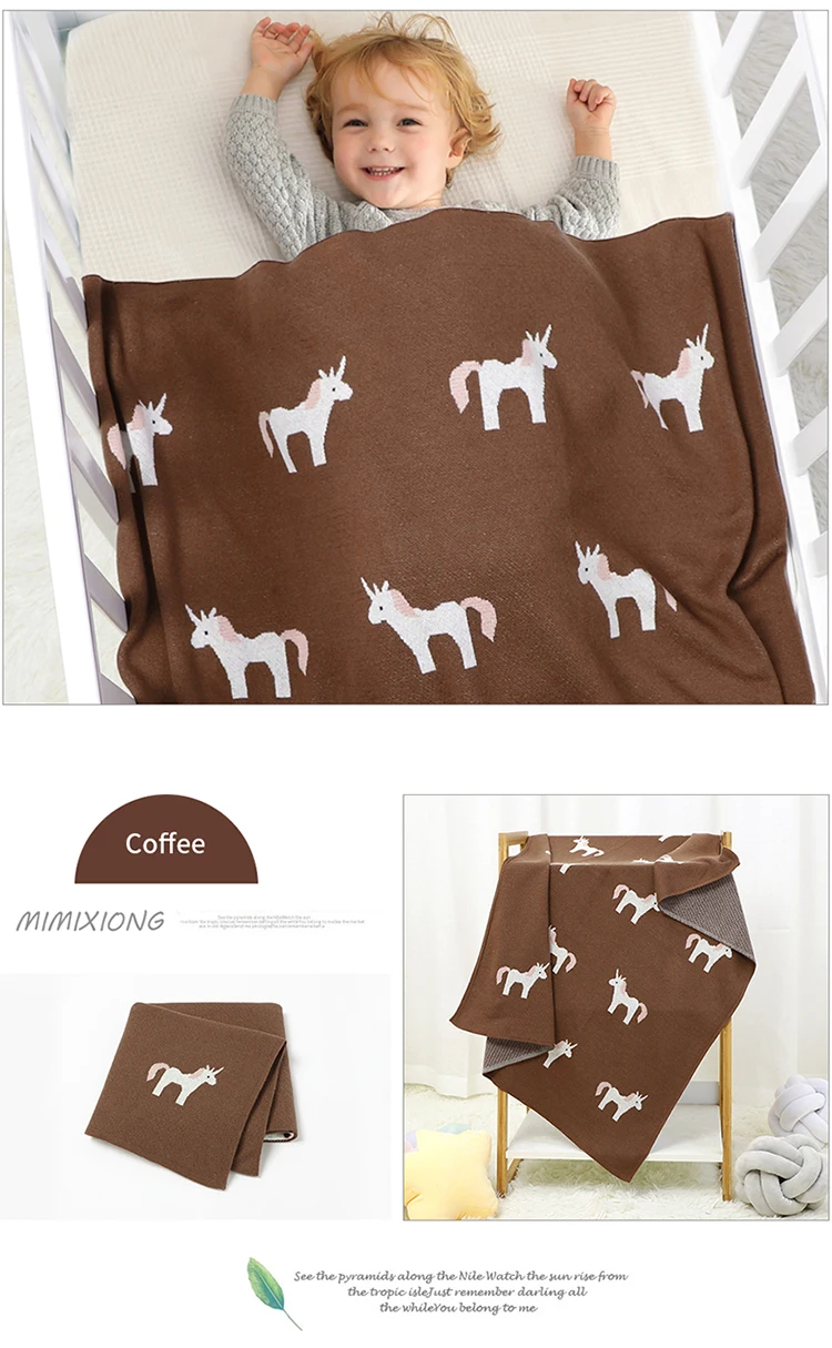 Manta de punto para bebé recién nacido, edredón de tela escocesa para cuna de niña pequeña, 100% algodón, bonito unicornio, envoltura suave para cochecito de niño