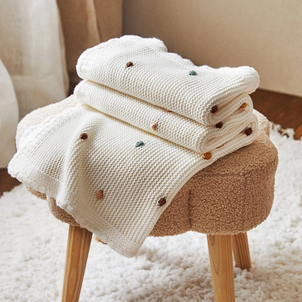 Comprar Manta de punto para bebé, tapiz suave con pompón nórdico, para sofá, cuna y cochecito, 100x70cm