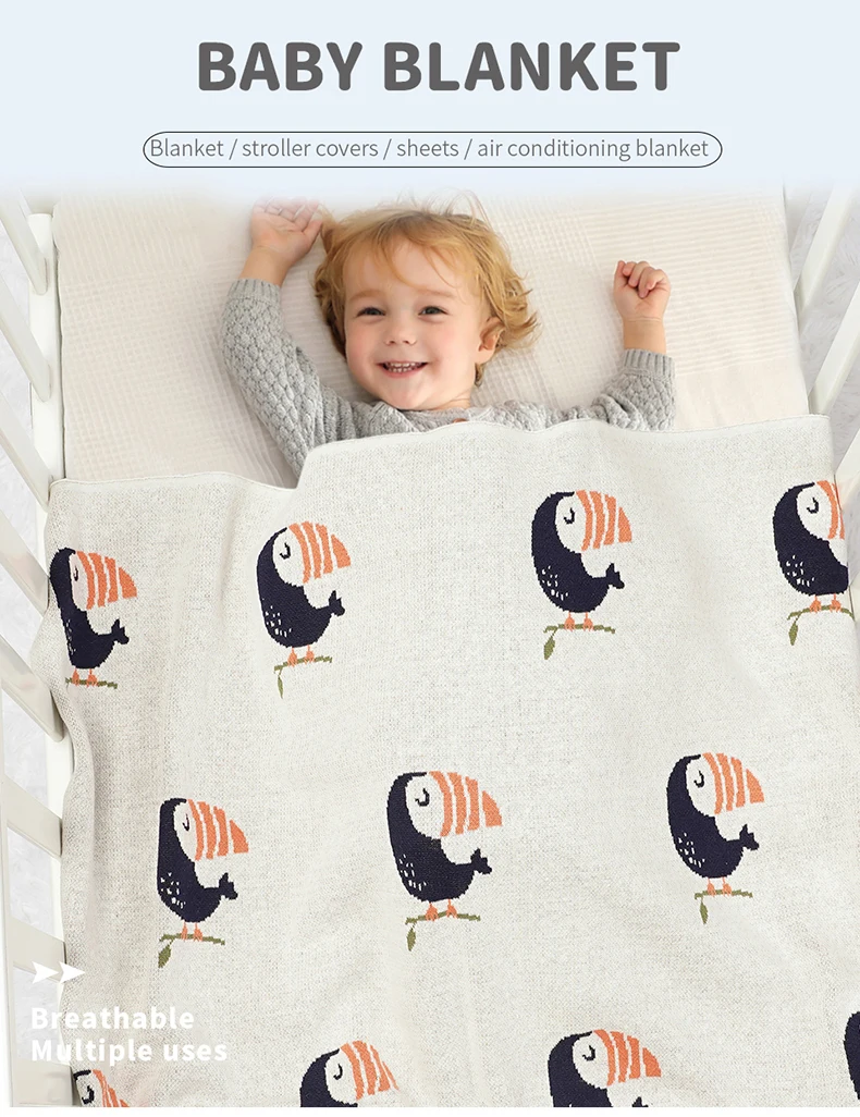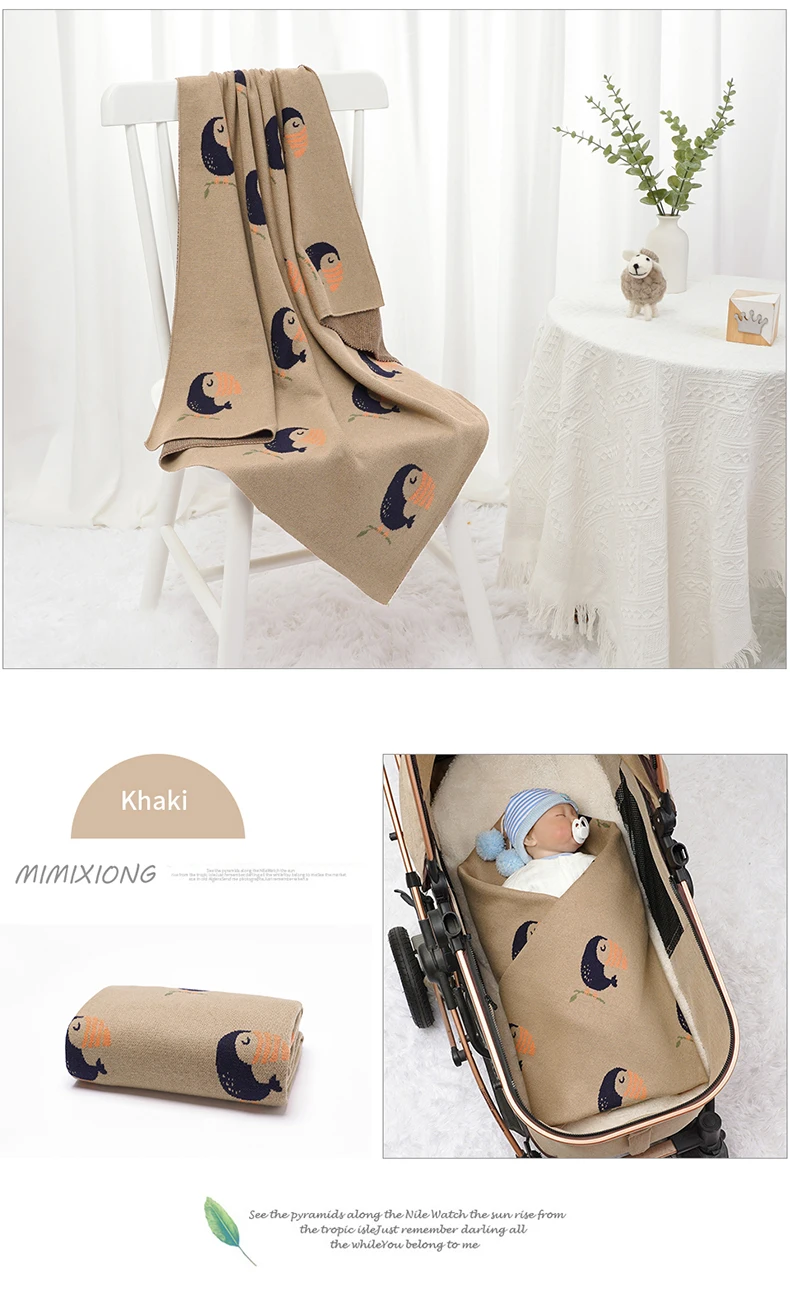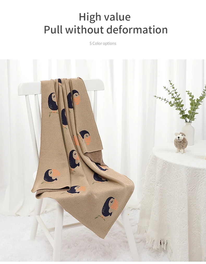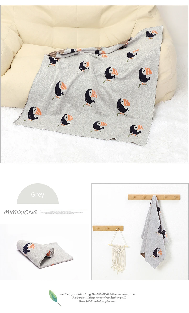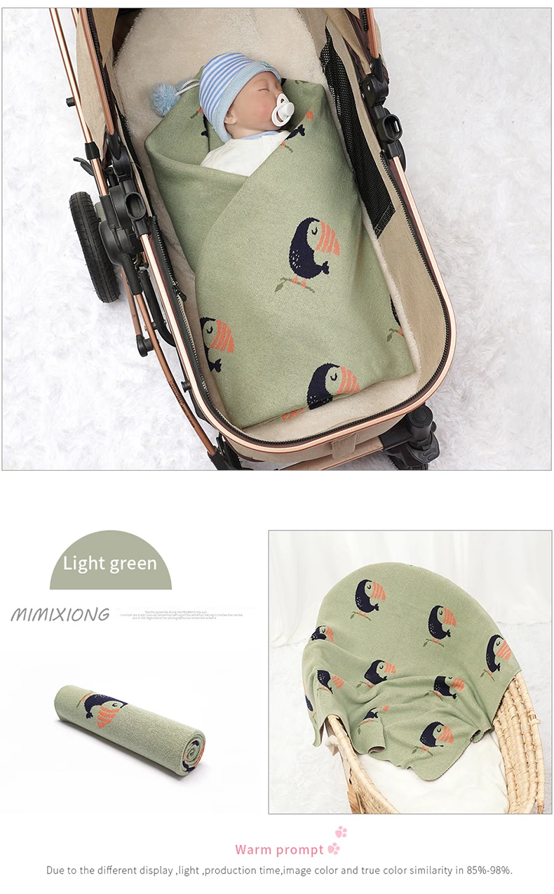 Manta de punto para recién nacidos, edredón de 100% algodón para cama y cuna, supersuave, 100x80CM, cuadros, bonitos pájaros