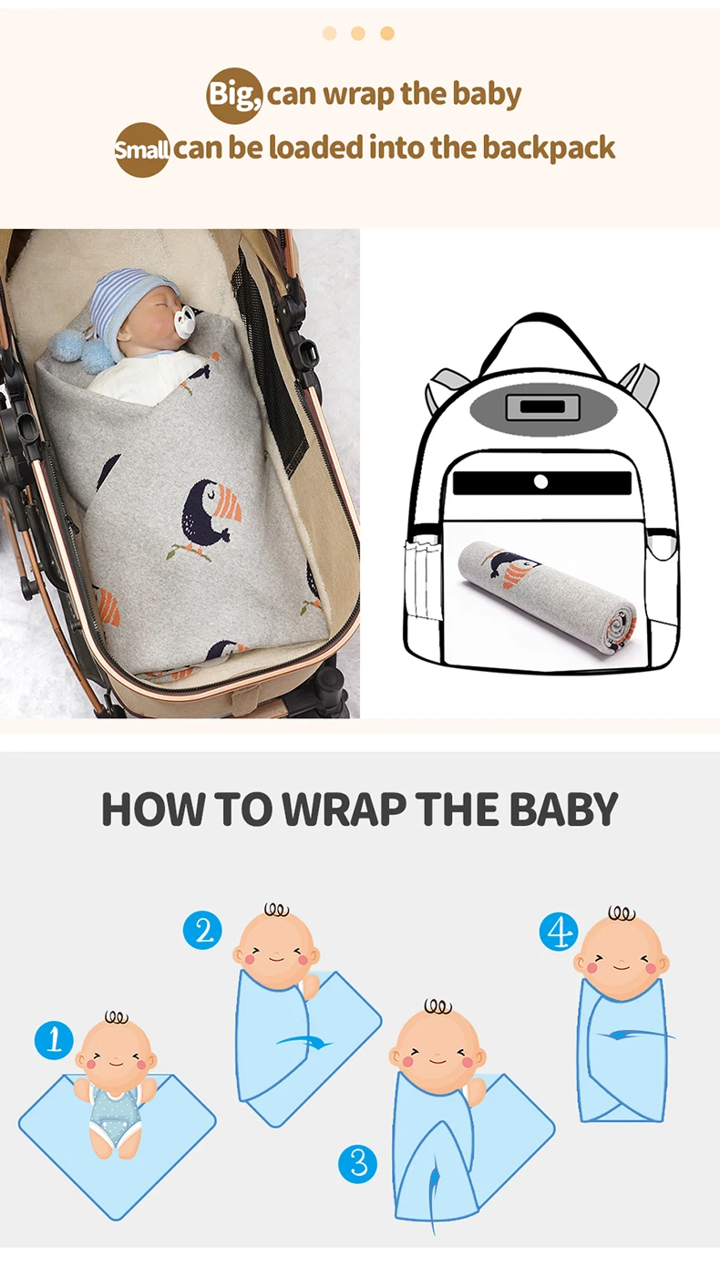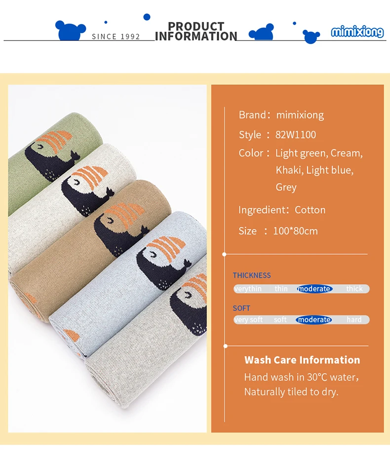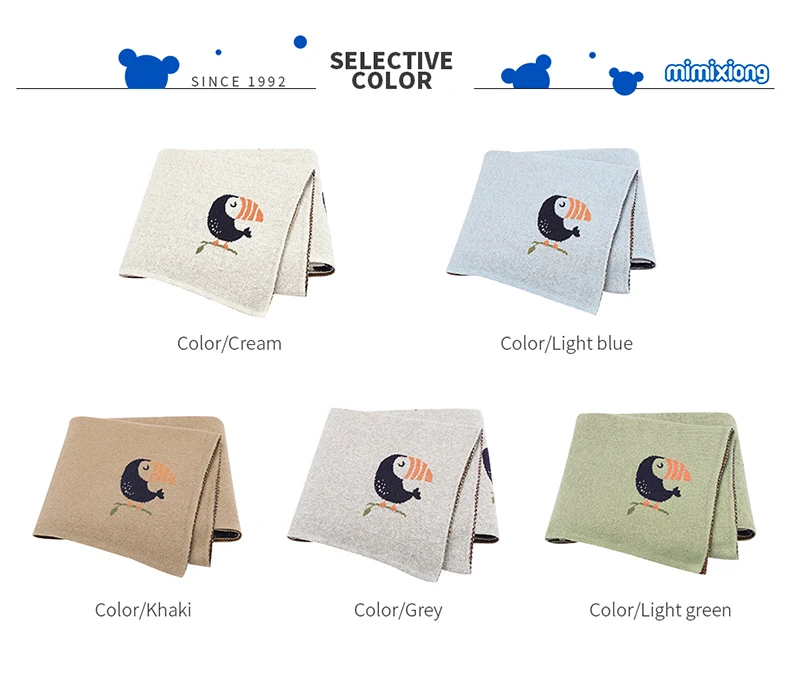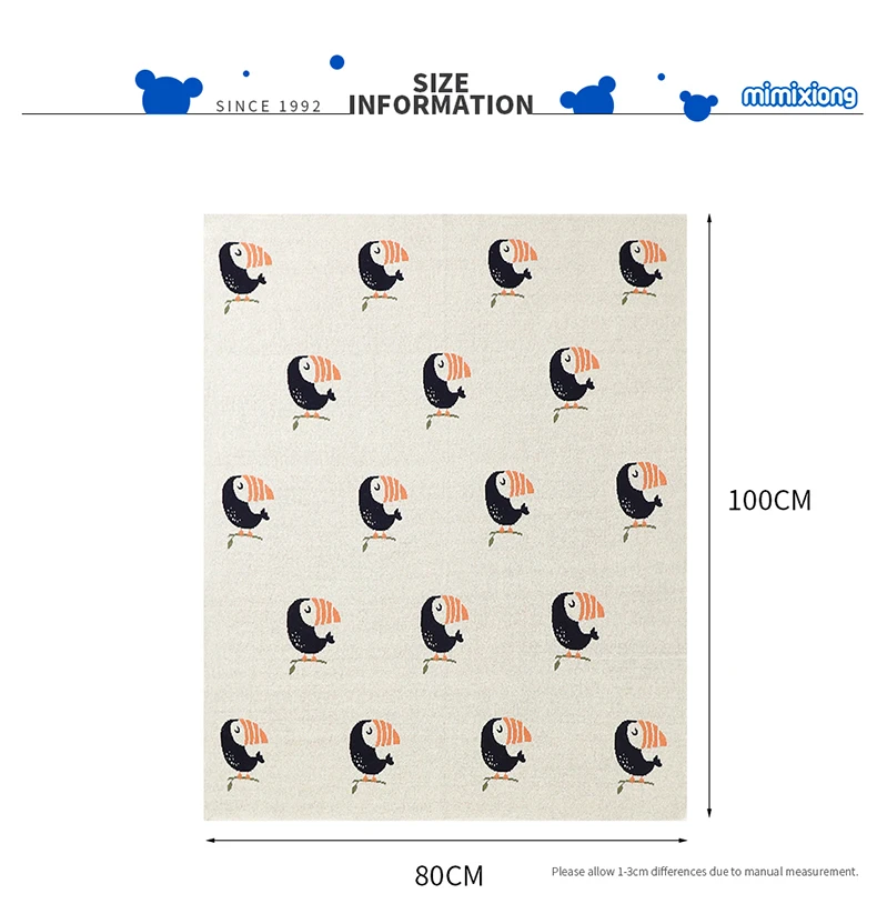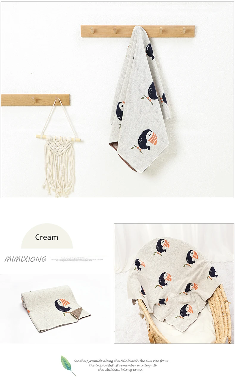 Manta de punto para recién nacidos, edredón de 100% algodón para cama y cuna, supersuave, 100x80CM, cuadros, bonitos pájaros