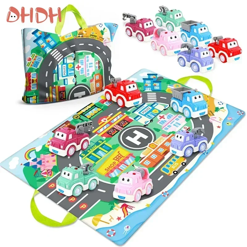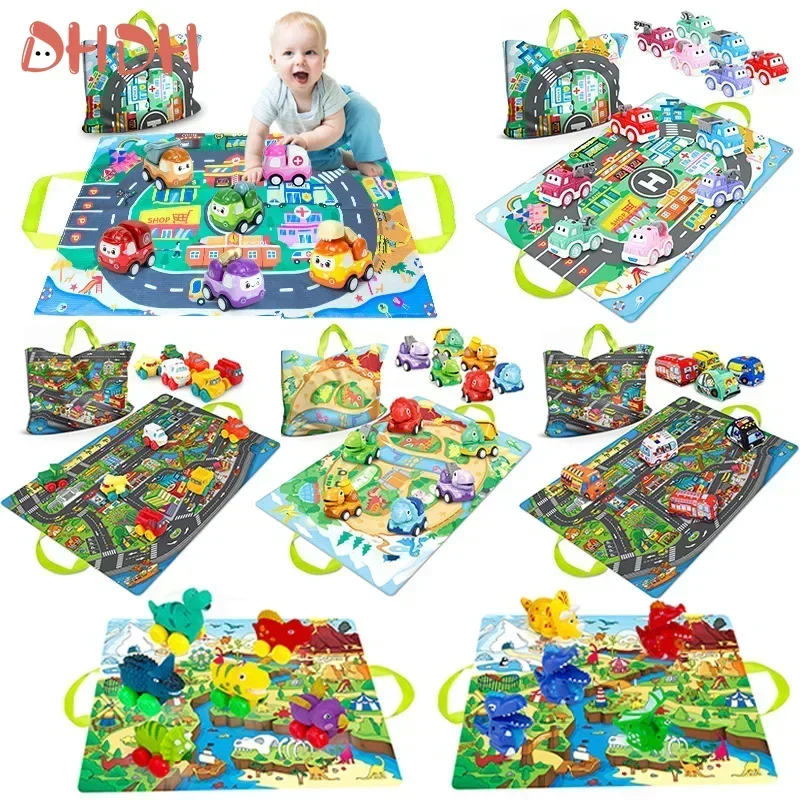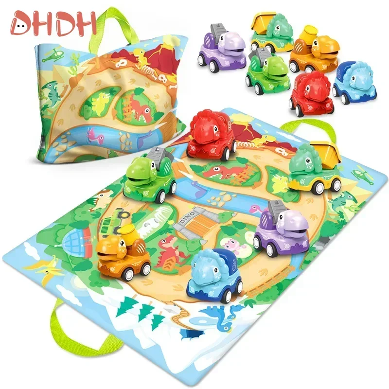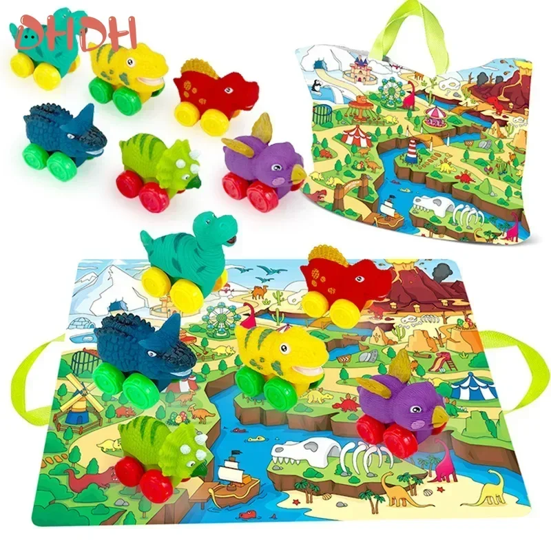 Manta de rompecabezas portátil para niños, mapa de escena, Alfombra de juego para bebés, Mini modelo de dinosaurio de dibujos animados, coche de juguete de dinosaurio