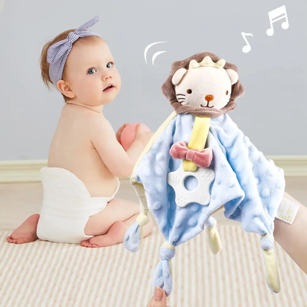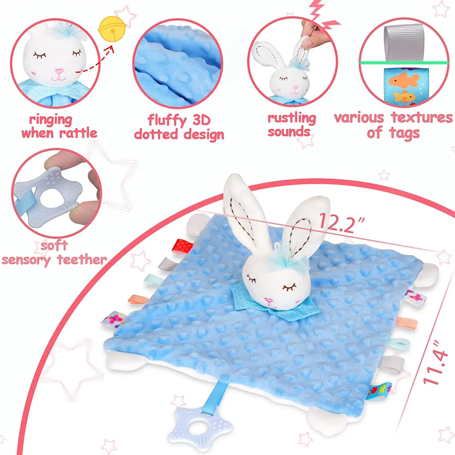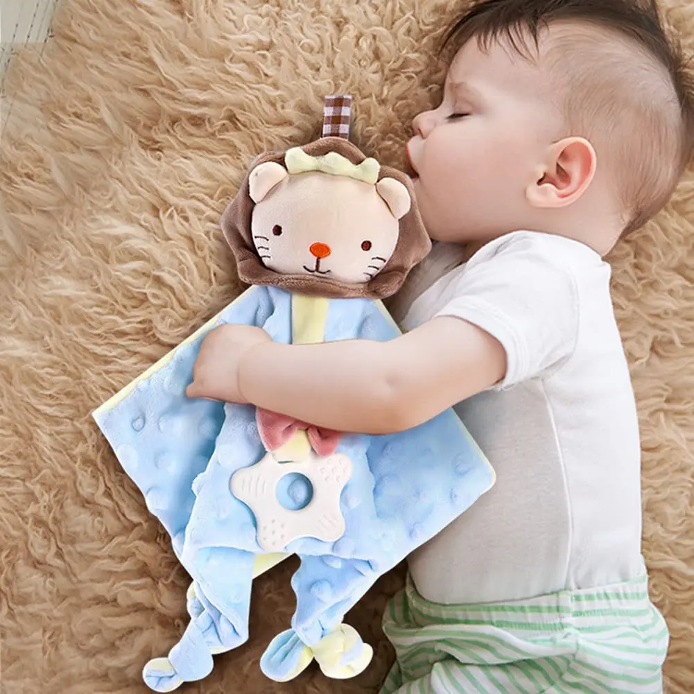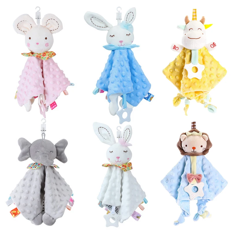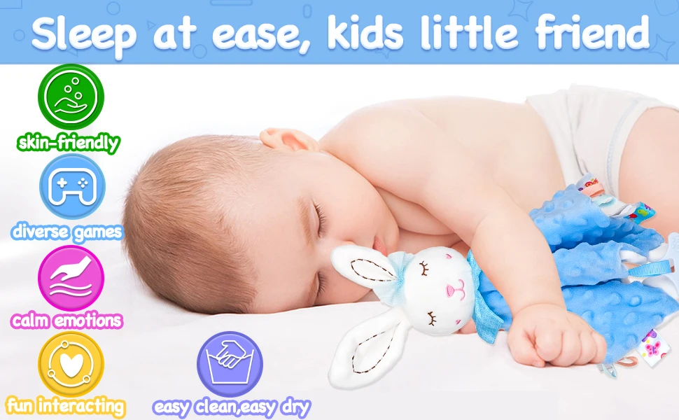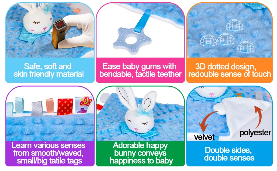 Manta de seguridad para bebé con etiquetas, juguetes de peluche suaves, juguete sensorial calmante Lovey, tela de puntos Minky Cute Cuddle Snuggle