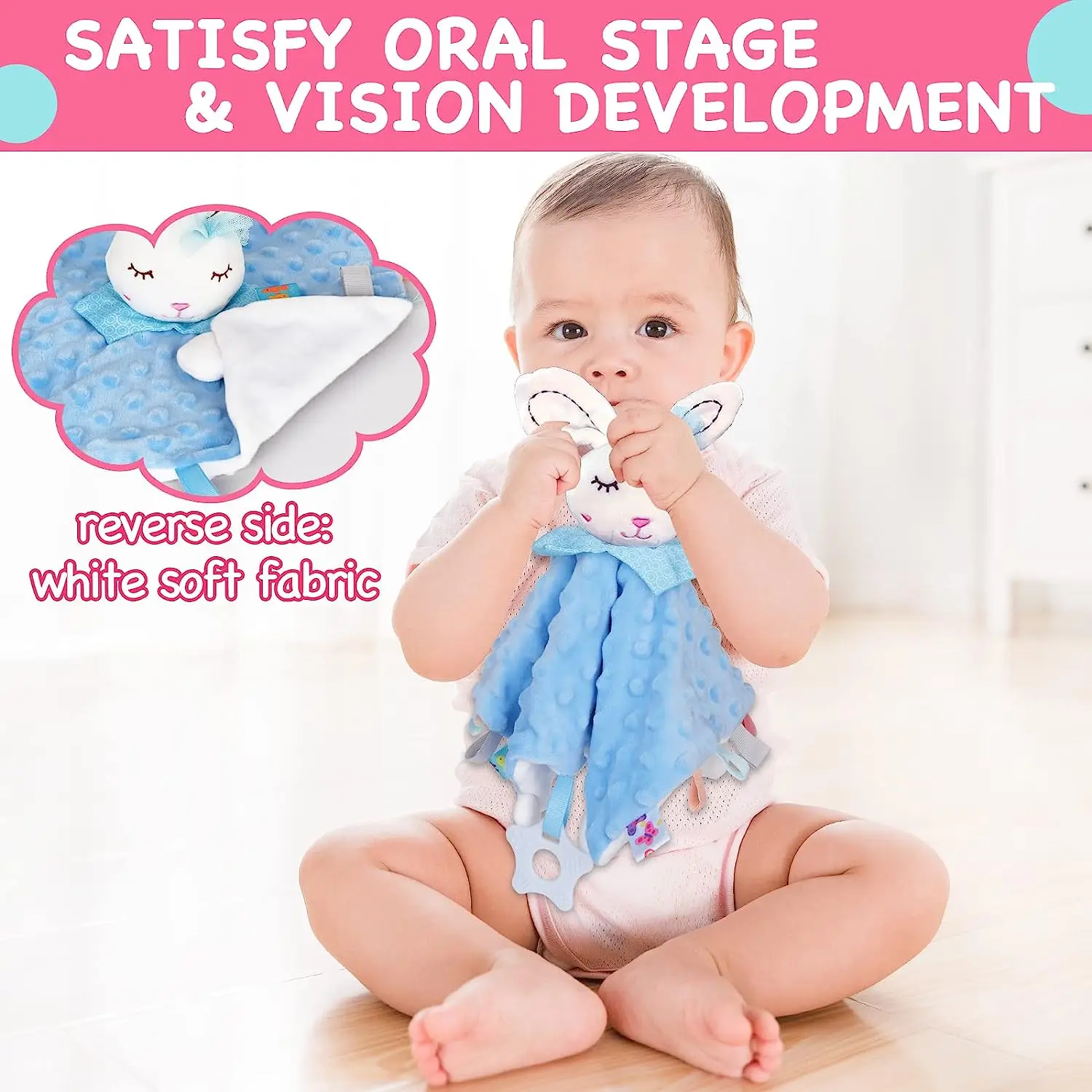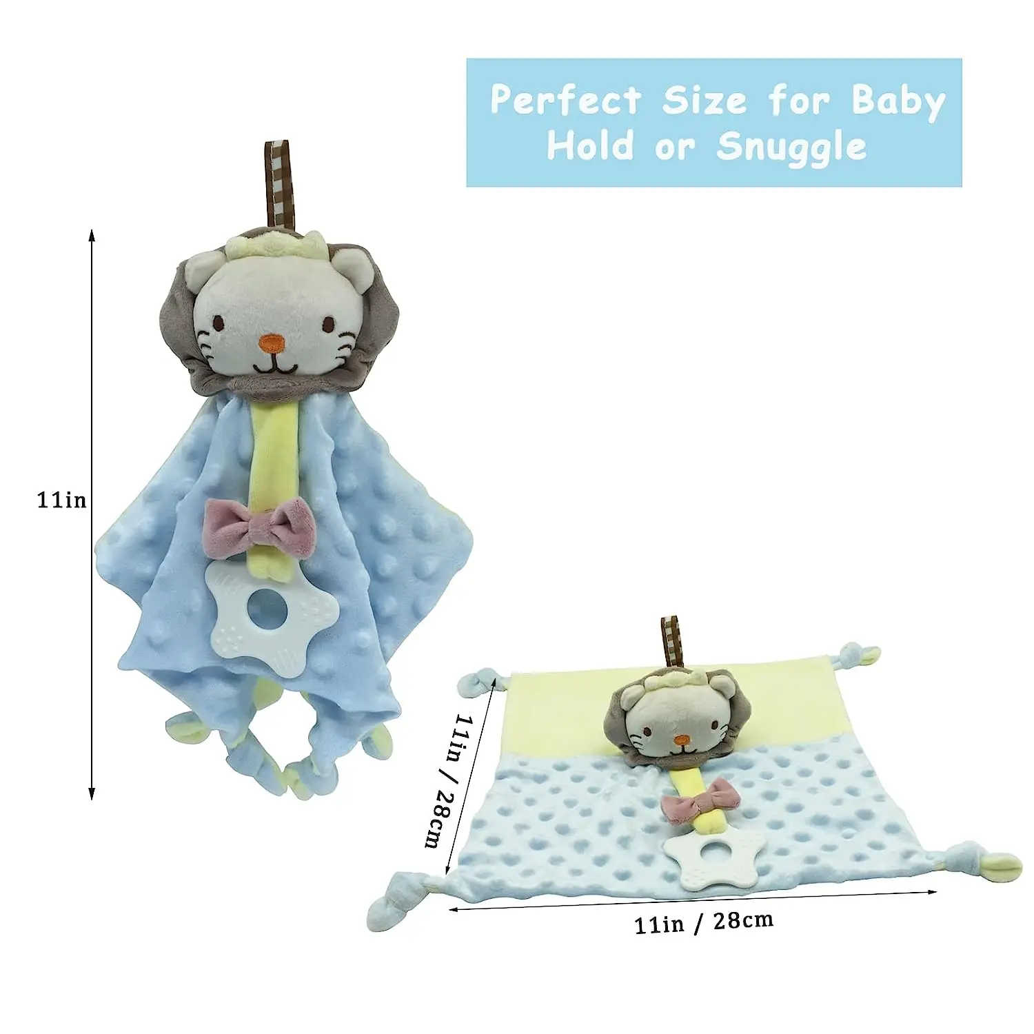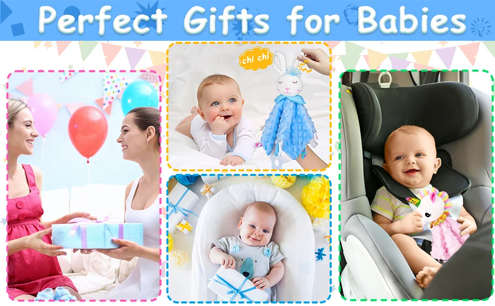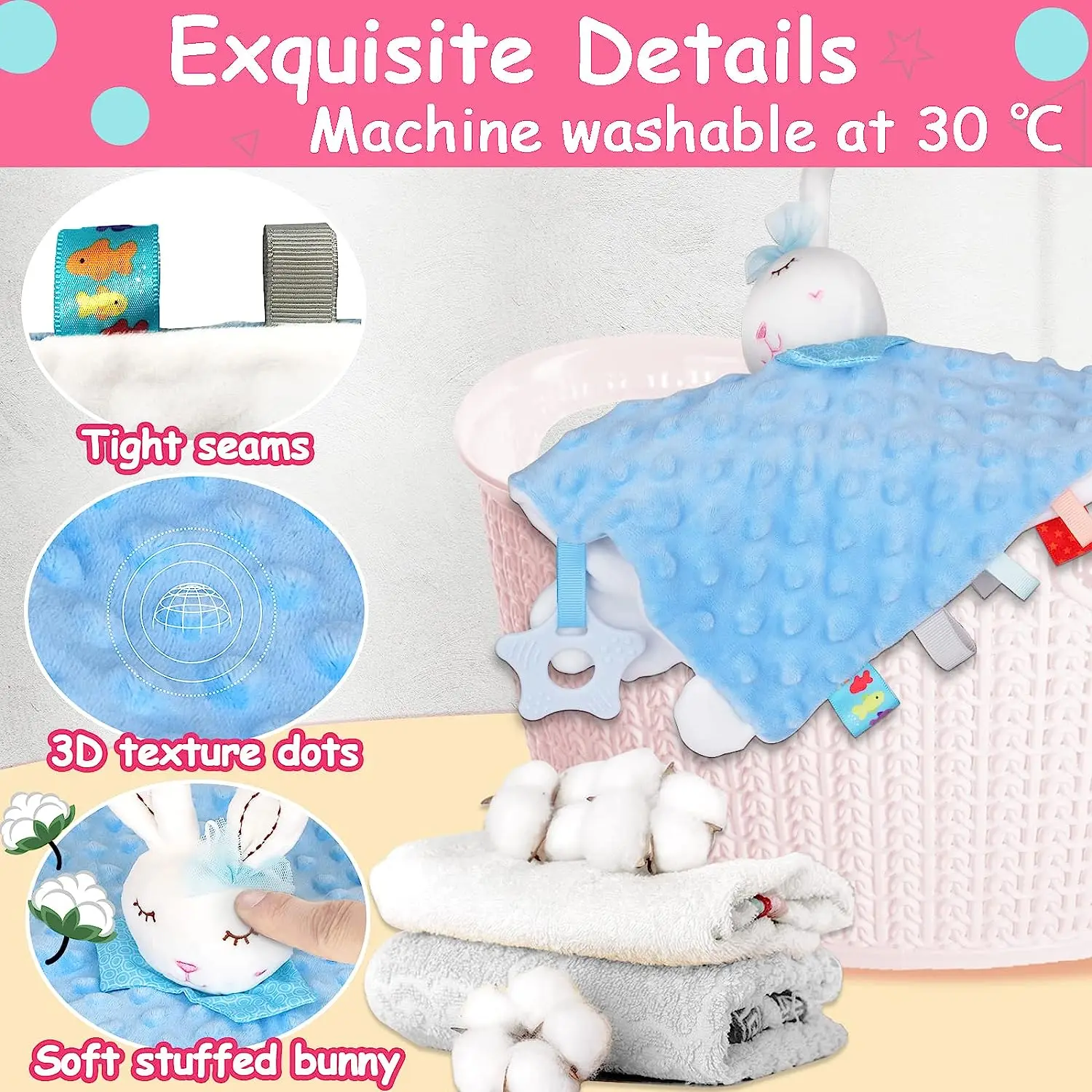 Manta de seguridad para bebé con etiquetas, juguetes de peluche suaves, juguete sensorial calmante Lovey, tela de puntos Minky Cute Cuddle Snuggle