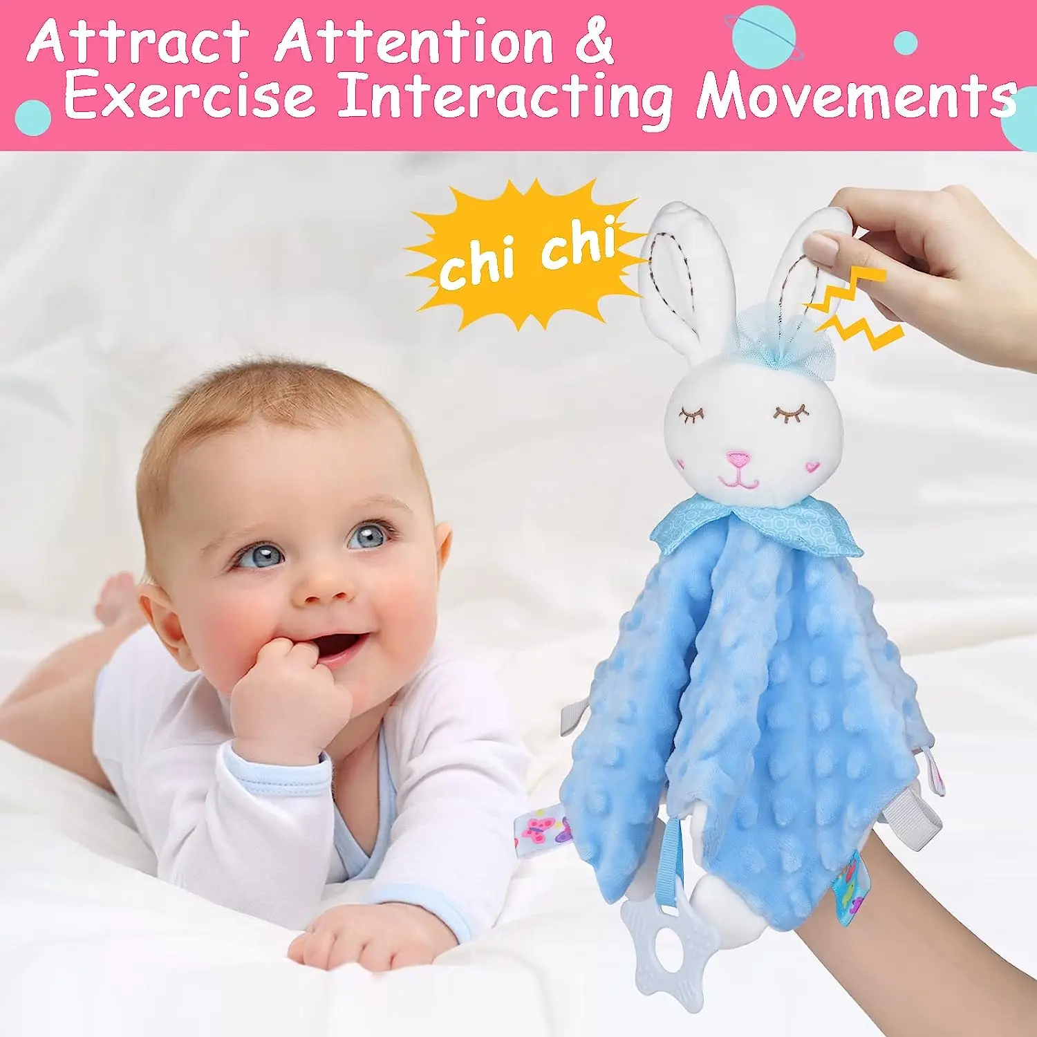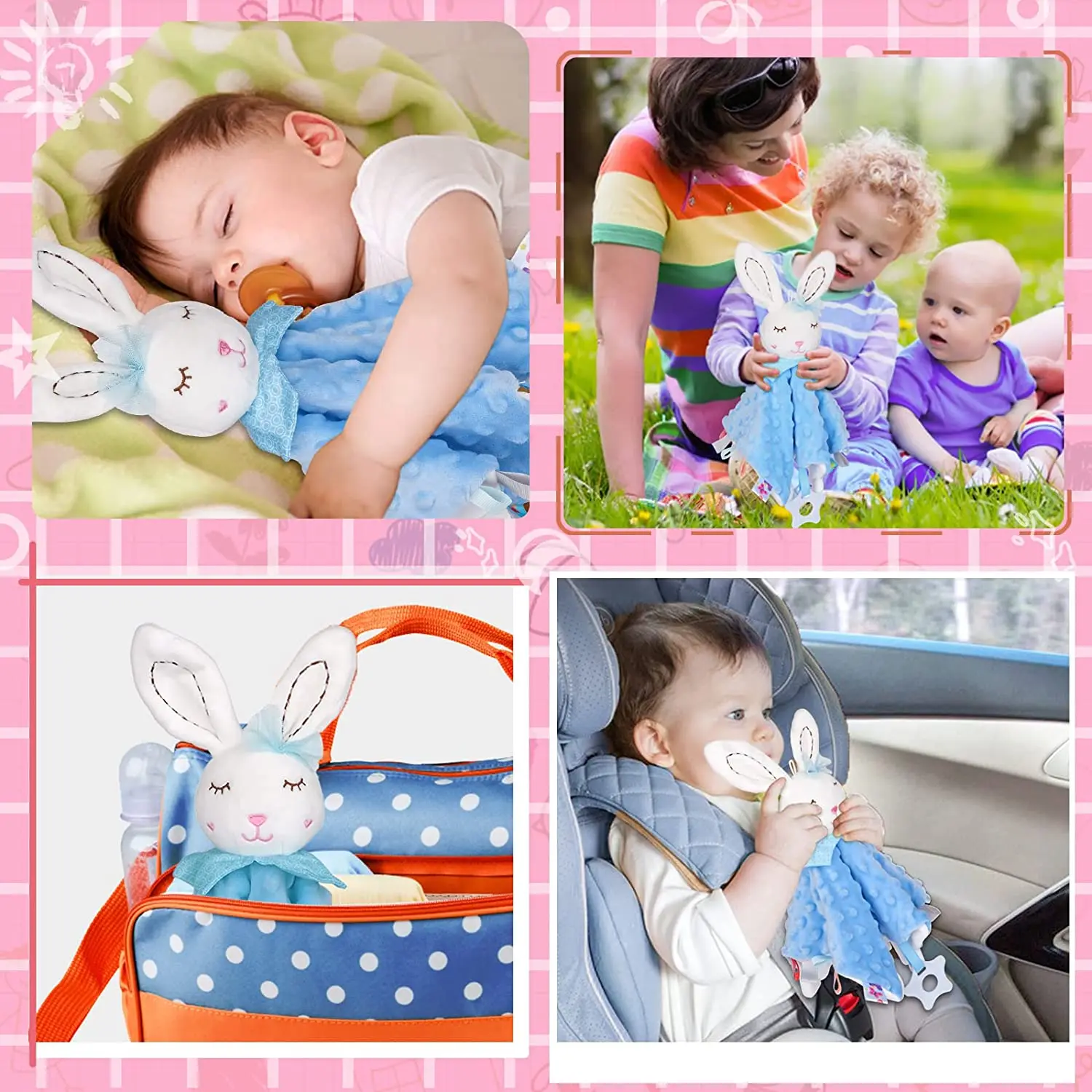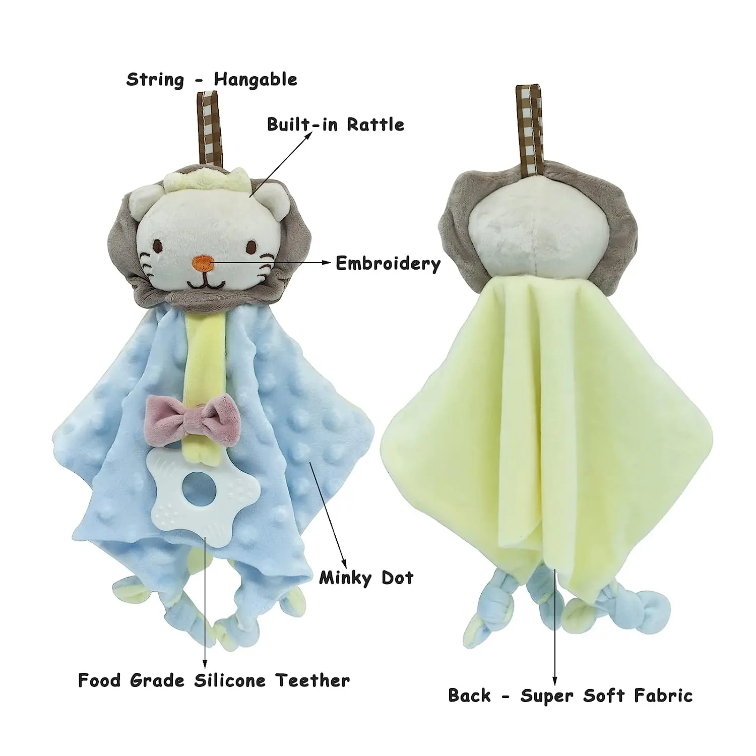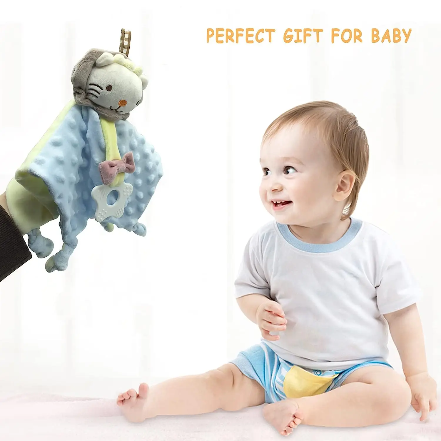 Manta de seguridad para bebé con etiquetas, juguetes de peluche suaves, juguete sensorial calmante Lovey, tela de puntos Minky Cute Cuddle Snuggle