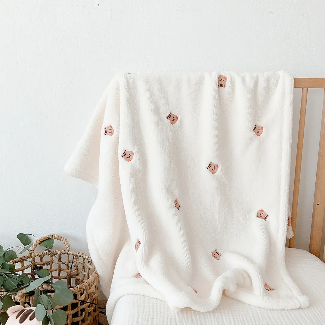 Manta suave de otoño e invierno, mantas para envolver, manta envolvente con bordado de franela, ropa de cama, funda para cochecito, edredón infantil cálido