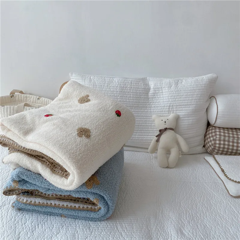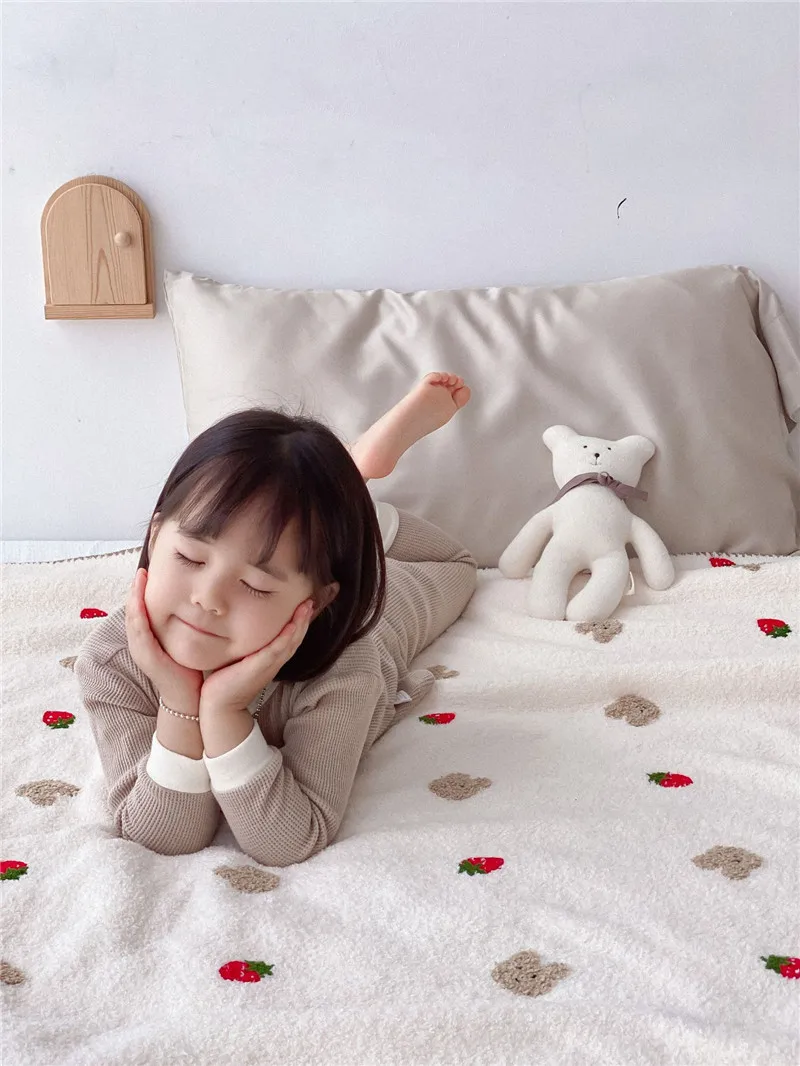 Comprar Manta térmica esponjosa de fresa de oso 3D súper suave para bebé, manta peluda de Sherpa para niños, funda de cama para bebé, edredón de cama para niños pequeños