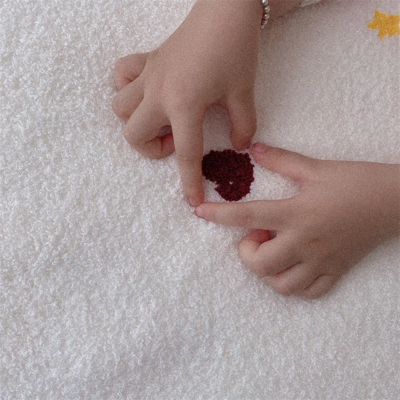 Material: espalda de sherpa (poliéster) + cara de coral + borde en forma de concha
