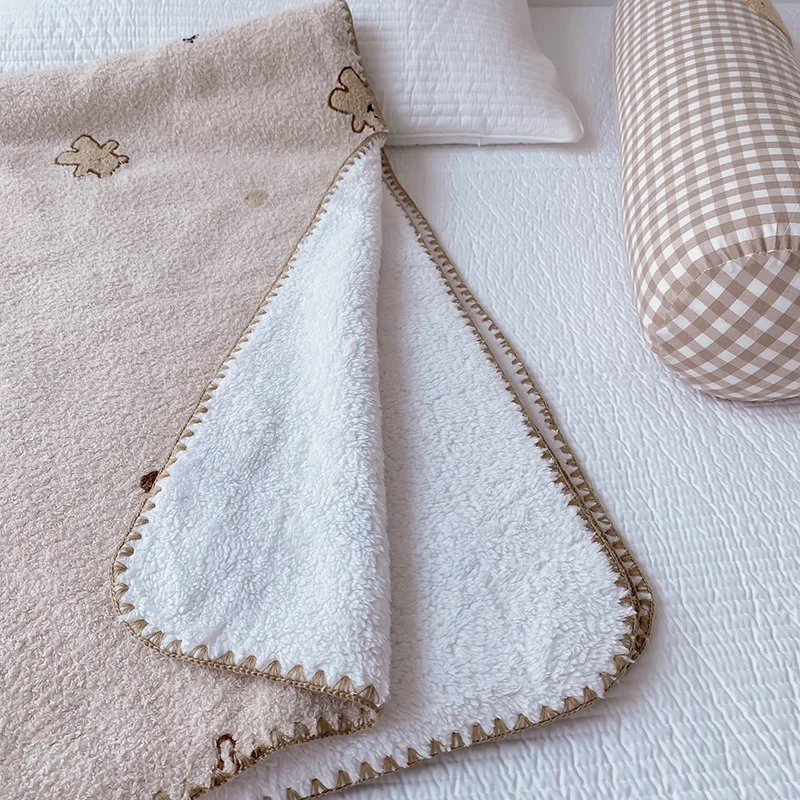 Material: espalda de sherpa (poliéster) + cara de coral + borde en forma de concha