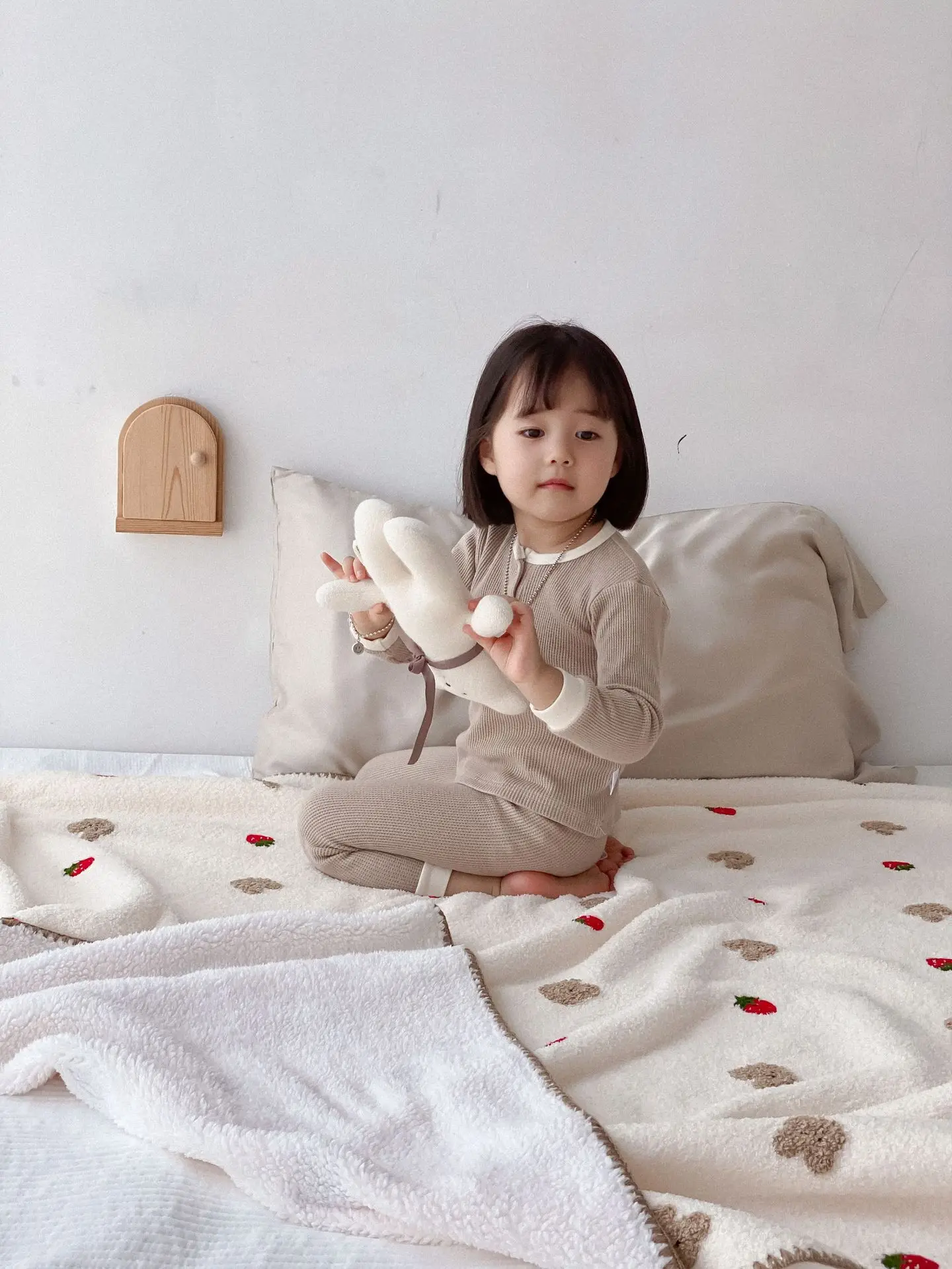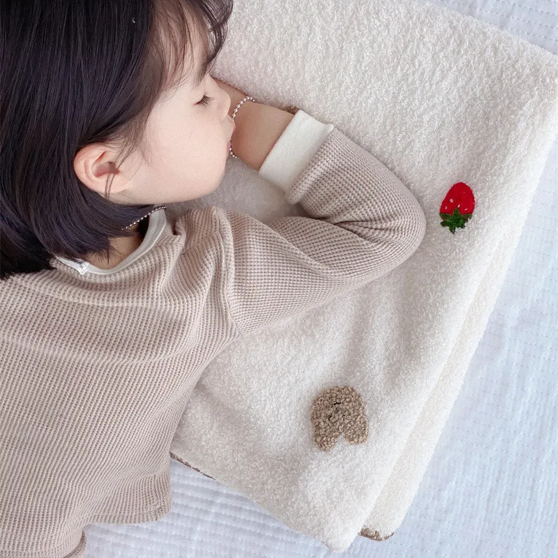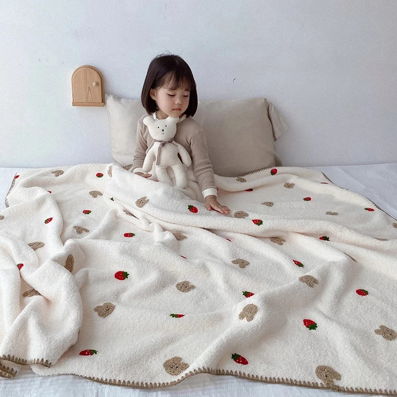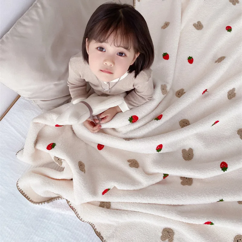 Comprar Manta térmica esponjosa de fresa de oso 3D súper suave para bebé, manta peluda de Sherpa para niños, funda de cama para bebé, edredón de cama para niños pequeños