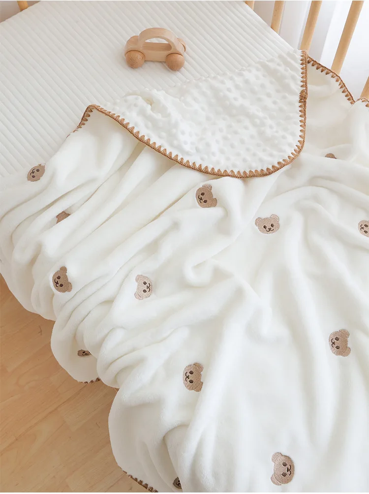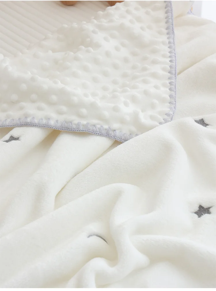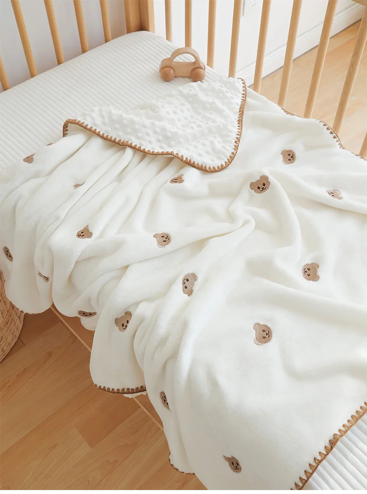 Comprar Manta térmica de franela con forro de puntos de Sherpa esponjoso para bebé, manta para recién nacido con bordado de osos y estrellas, manta para cochecito de bebé cepillada