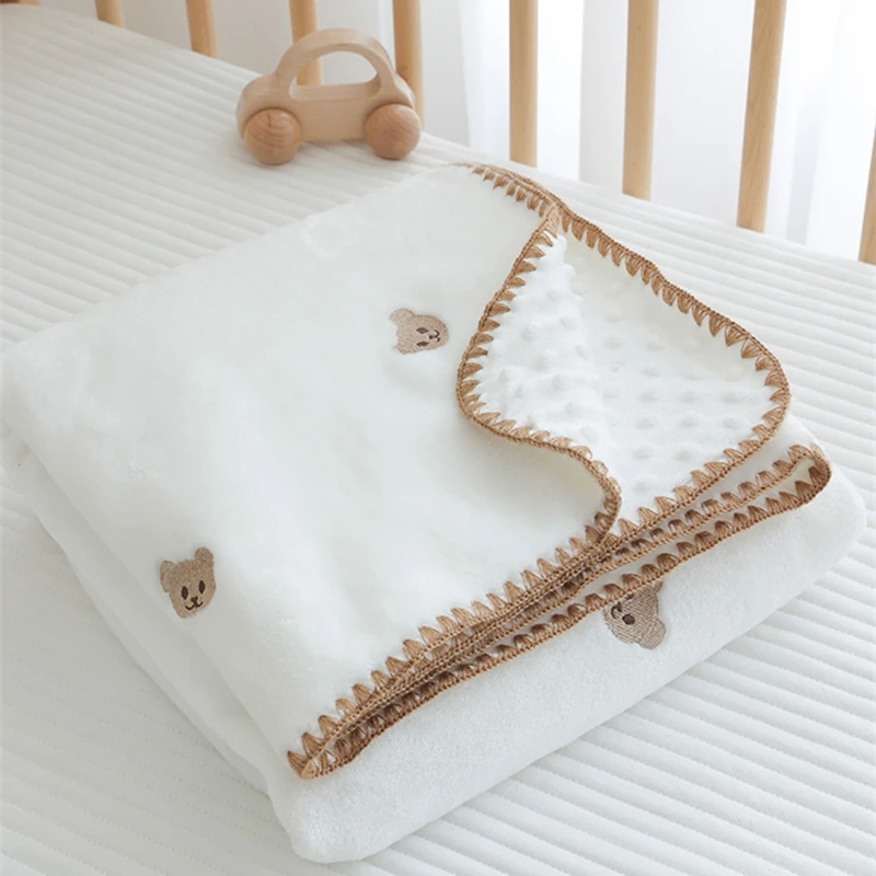 Comprar Manta térmica de franela con forro de puntos de Sherpa esponjoso para bebé, manta para recién nacido con bordado de osos y estrellas, manta para cochecito de bebé cepillada
