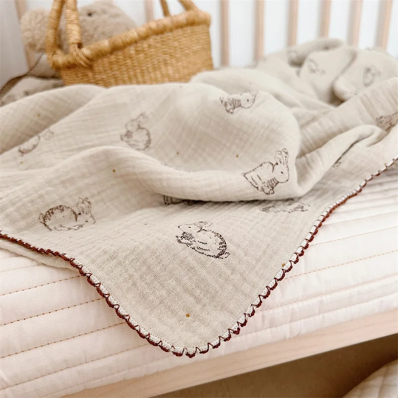 Manta de verano para bebé recién nacido, mantas de muselina de algodón con estampado de conejito para bebé, cubierta para siesta, cubiertas de sábanas