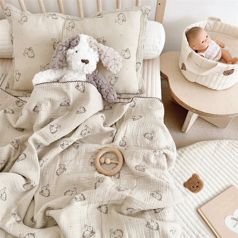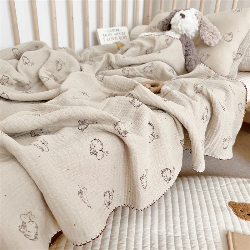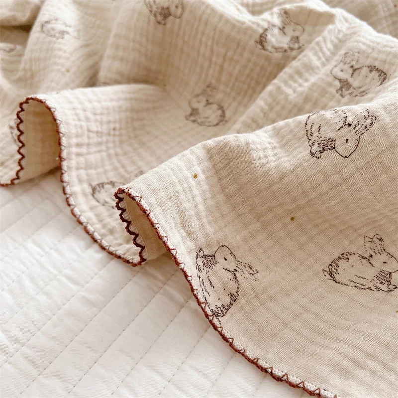 Manta de verano para bebé recién nacido, mantas de muselina de algodón con estampado de conejito para bebé, cubierta para siesta, cubiertas de sábanas