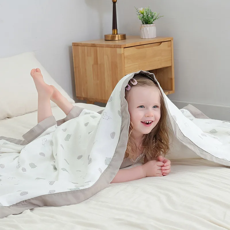 4 capas, apto para el verano como manta o toalla de baño.