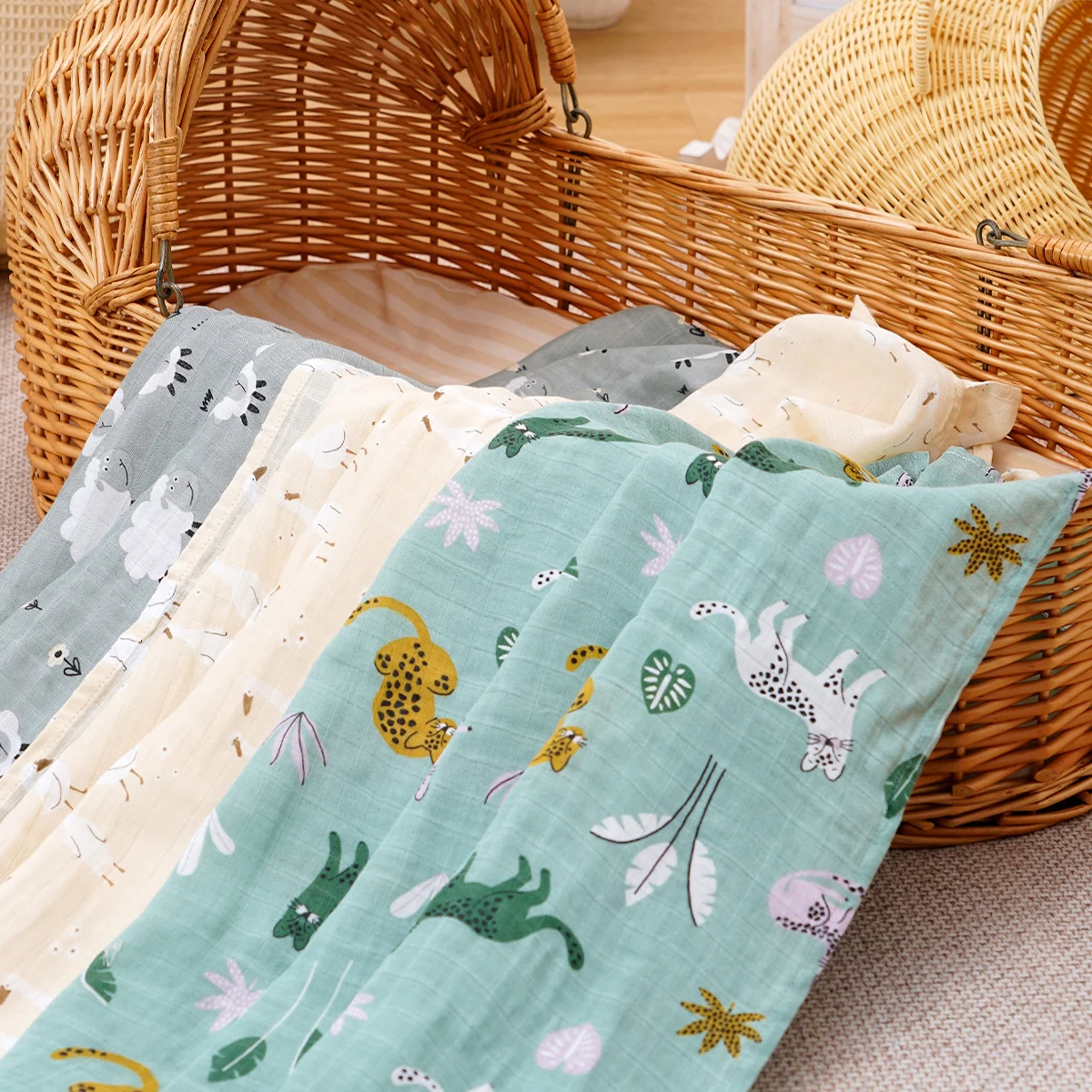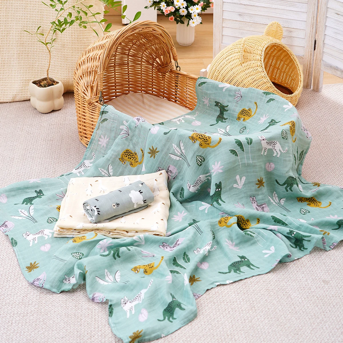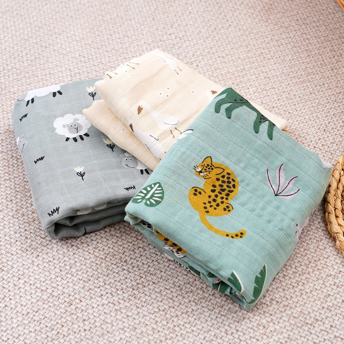 Comprar Mantas de algodón de bambú para bebé, manta envolvente de muselina para recién nacido de 120x110cm, ropa de cama infantil con estampado suave, Toalla de baño, 2 uds./3 uds.