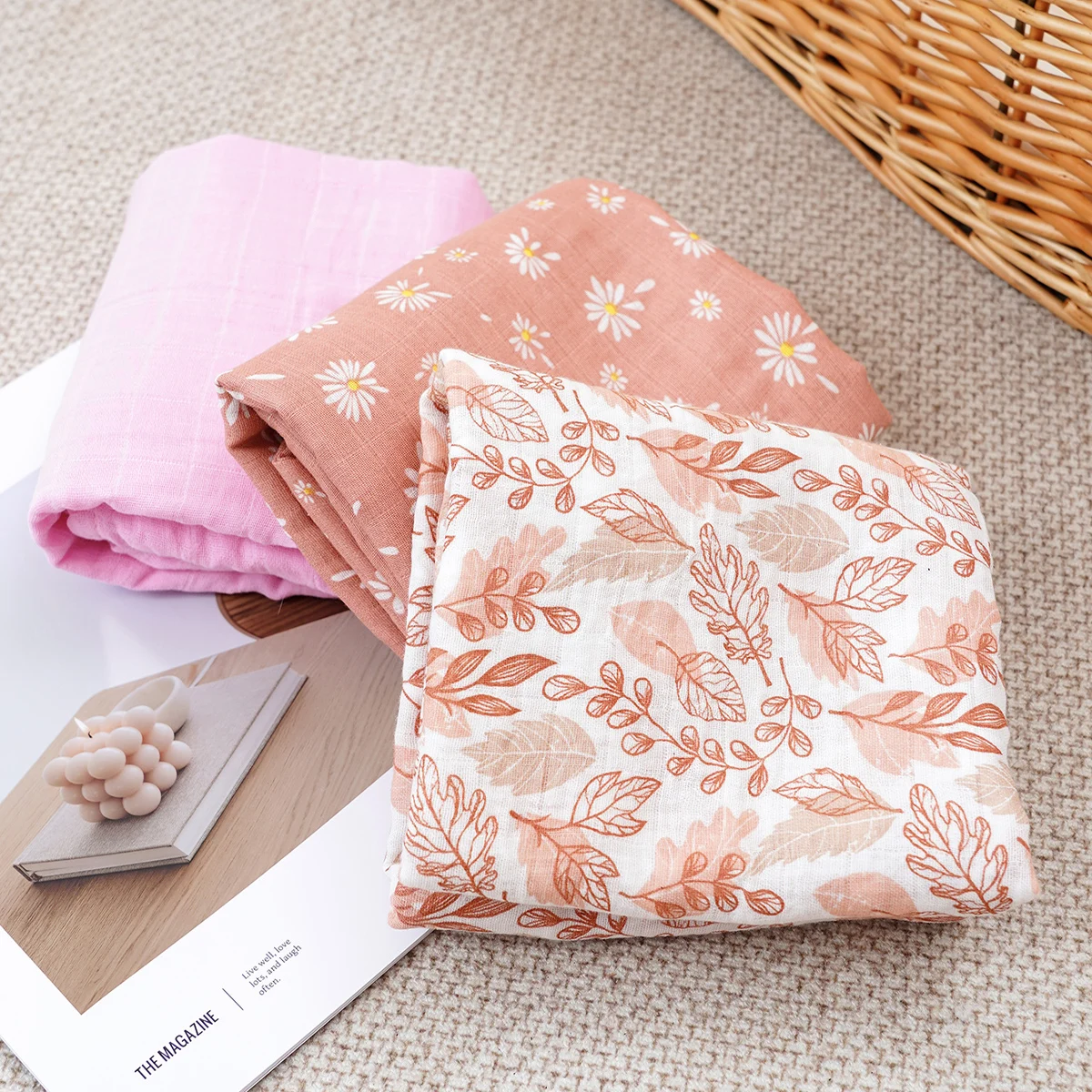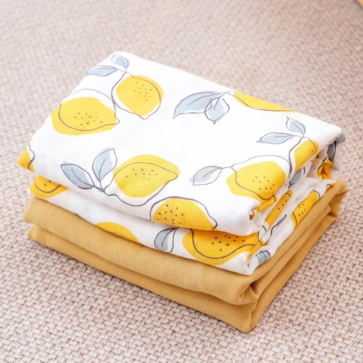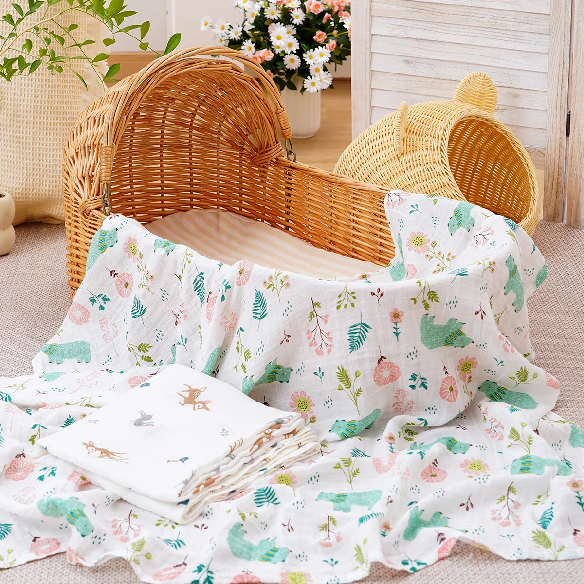 Comprar Mantas de algodón de bambú para bebé, manta envolvente de muselina para recién nacido de 120x110cm, ropa de cama infantil con estampado suave, Toalla de baño, 2 uds./3 uds.