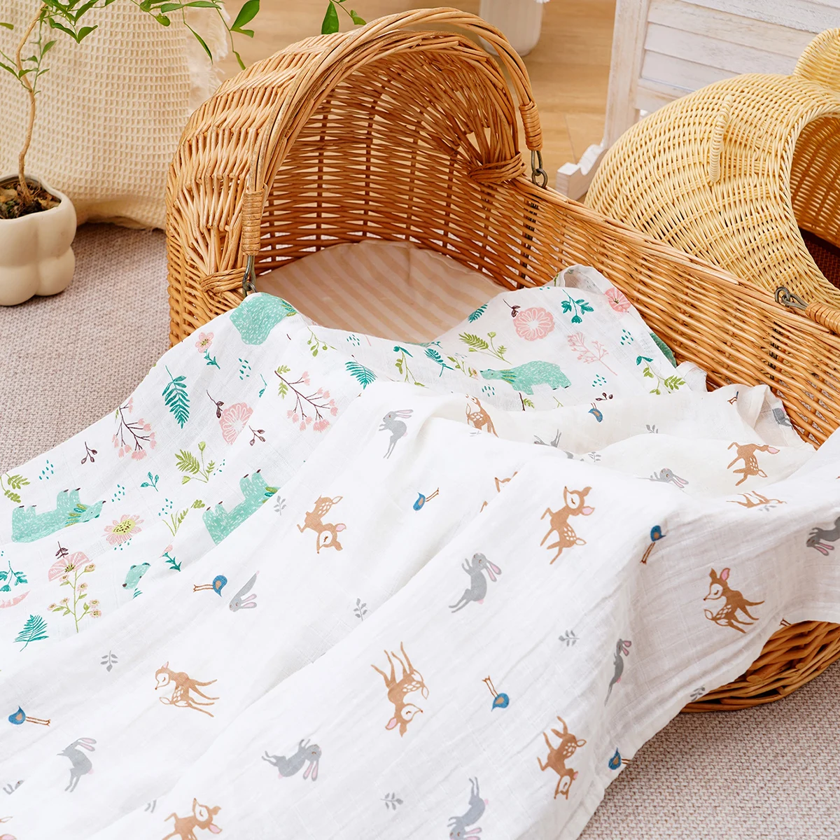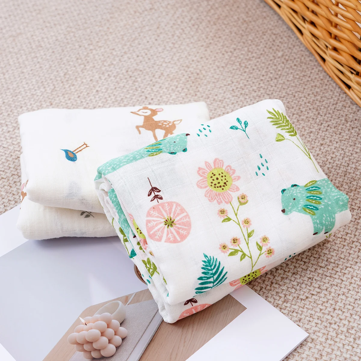 Comprar Mantas de algodón de bambú para bebé, manta envolvente de muselina para recién nacido de 120x110cm, ropa de cama infantil con estampado suave, Toalla de baño, 2 uds./3 uds.