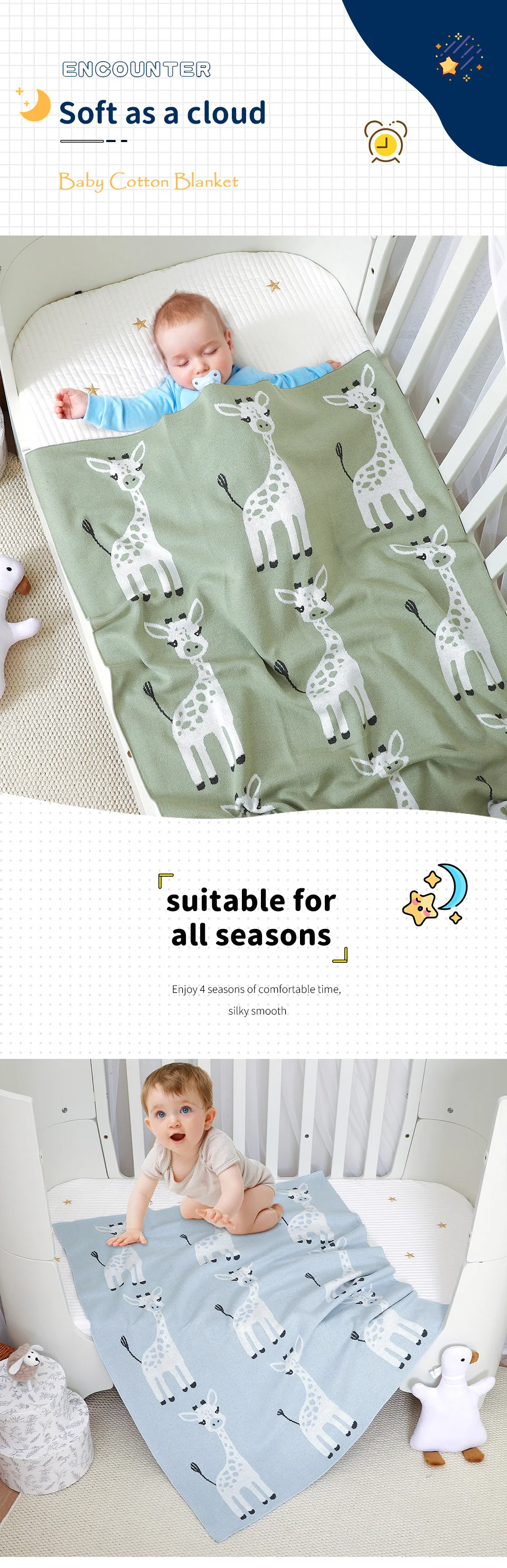 Mantas de algodón con dibujos de ciervos para bebé, mantas tejidas de 100x80cm de doble uso para cuna de recién nacido, sábanas de cama para siesta, colcha transpirable para niño y niña