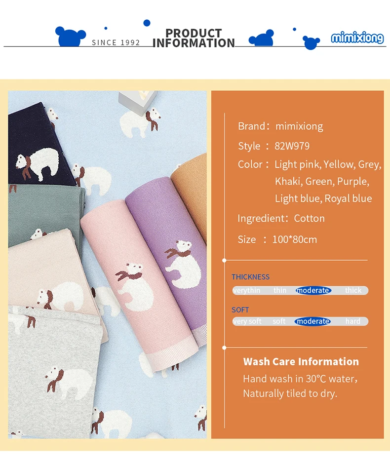 Comprar Mantas de algodón tejidas para bebé recién nacido, cochecito para niño y niña, manta con bonitos osos de dibujos animados, ropa de cama para niño pequeño, colcha para sofá de 100x80CM