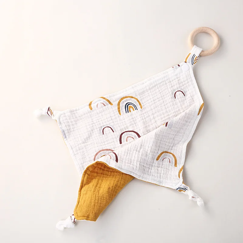 Comprar Mantas para bebé, pañales de muselina para recién nacido, material para bebé, edredón para recién nacido, toalla tranquilizadora, Baberos, paño para eructar con anillo mordedor de madera