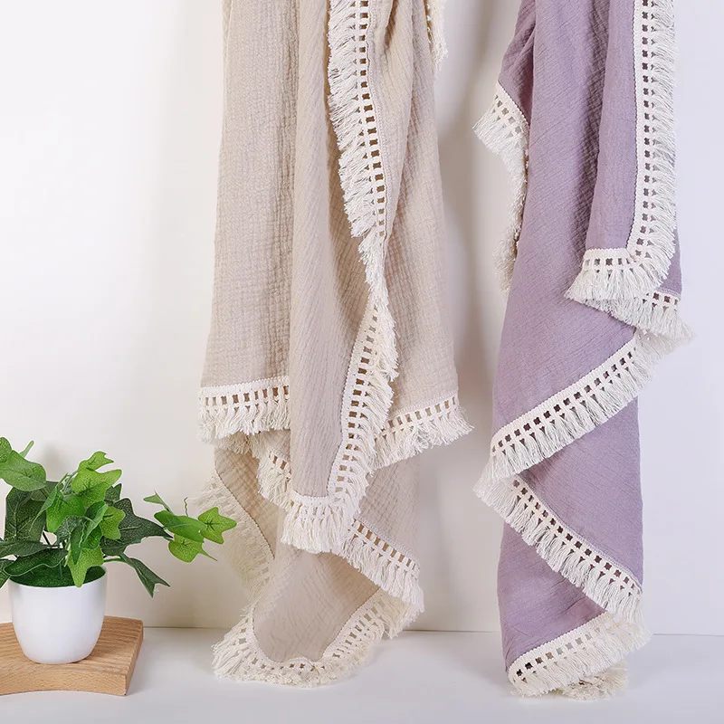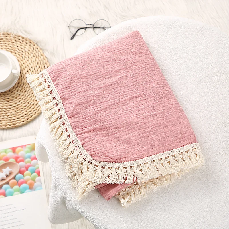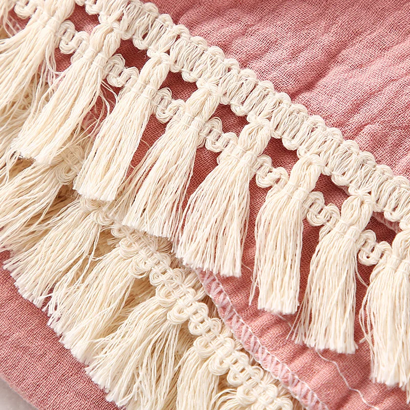 Mantas envolventes de muselina de algodón para bebé recién nacido, manta receptora con borlas, manta envolvente para recién nacido, manta para dormir infantil
