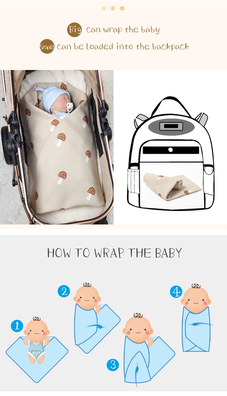 Mantas de punto para bebé recién nacido, edredón de algodón mensual, 100x80cm, sacos de dormir para cochecito
