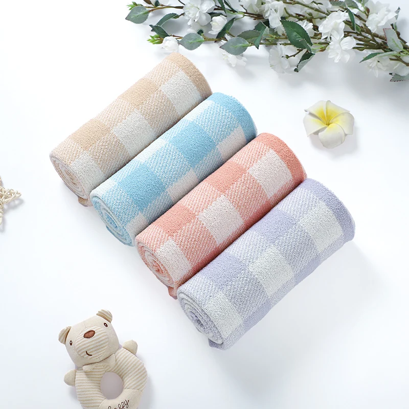 Mantas de punto para bebé recién nacido, manta envolvente para cochecito, fundas para dormir de 90x70CM, colcha de cama para niño y niña, colcha de moda a cuadros súper suave