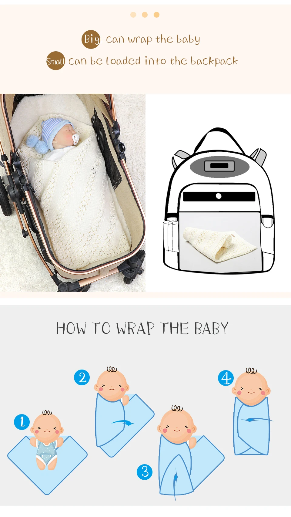 Mantas reversibles de punto suave para bebé, cubierta de algodón para recién nacido, cosas para cochecito, Moisés, accesorios de alfombrilla de 100x80cm