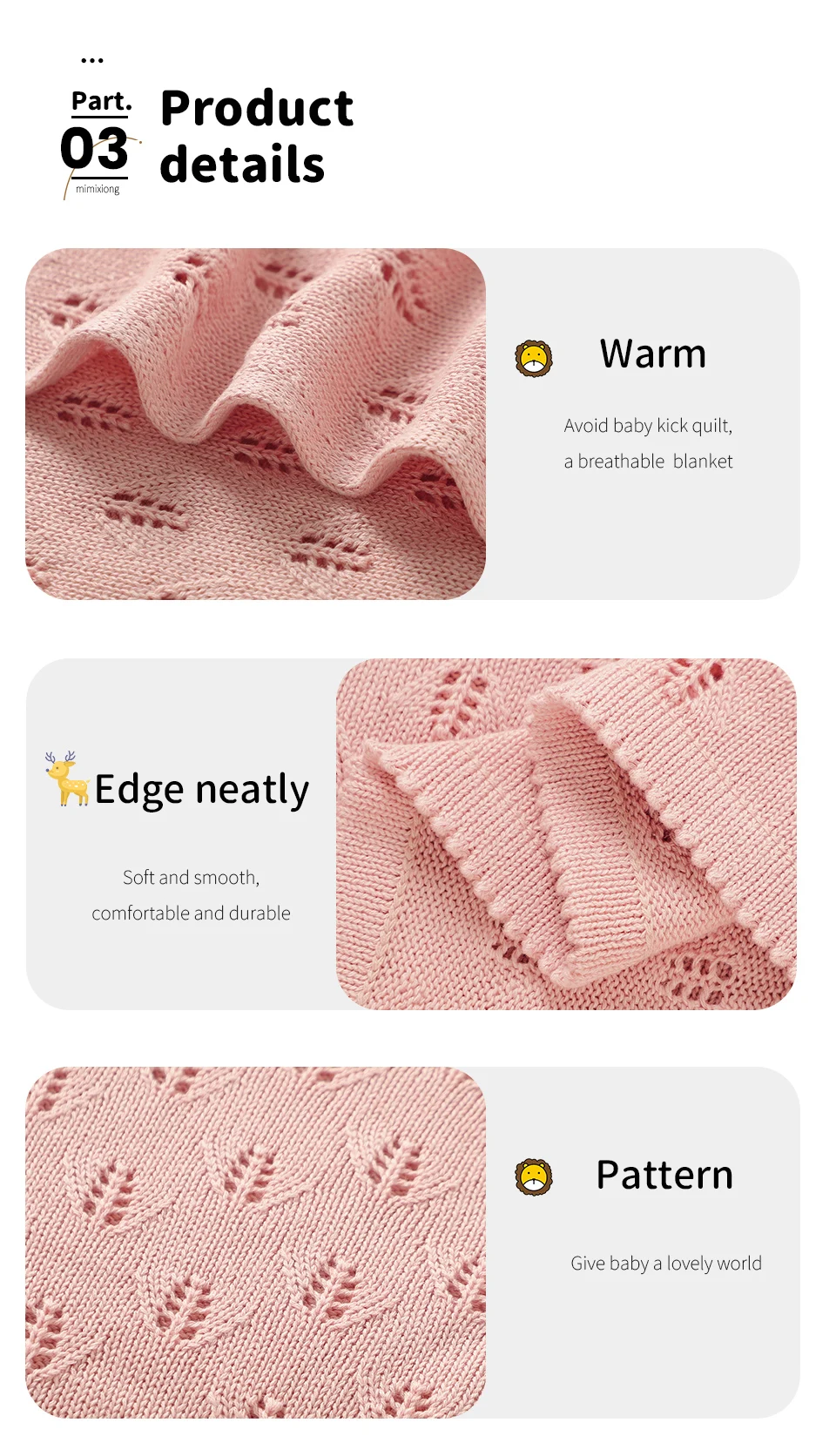 Mantas tejidas para bebé, 90x70cm, cochecito para recién nacidos, niños y niñas, envoltura para dormir, colchas de recepción infantiles de algodón sólido, estera