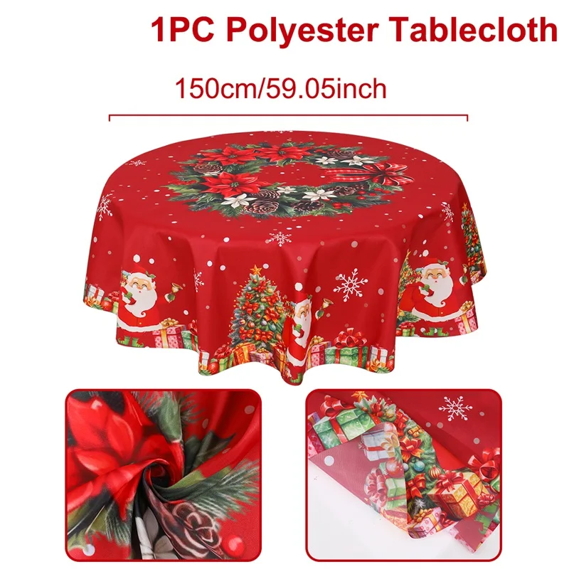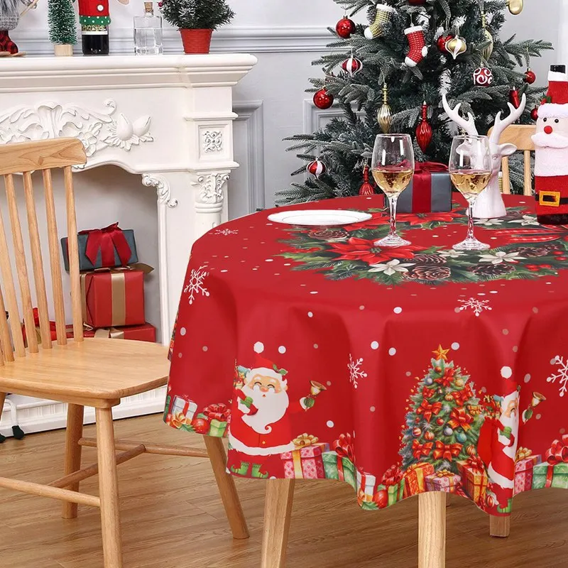 Mantel redondo navideño, mantel de muñeco de nieve de Papá Noel, adornos navideños para el hogar, decoración navideña de Año Nuevo 2024